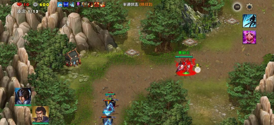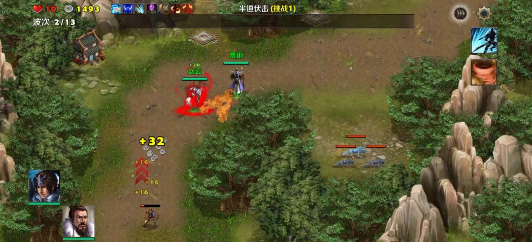 半道伏击这个图,挂机也比较难,主要是不把狼人清掉,过不了关,狼人还在河对面,没办法只能最后操作一下赵云丢个分身过去。站位就按照那样,造个火塔就行。
