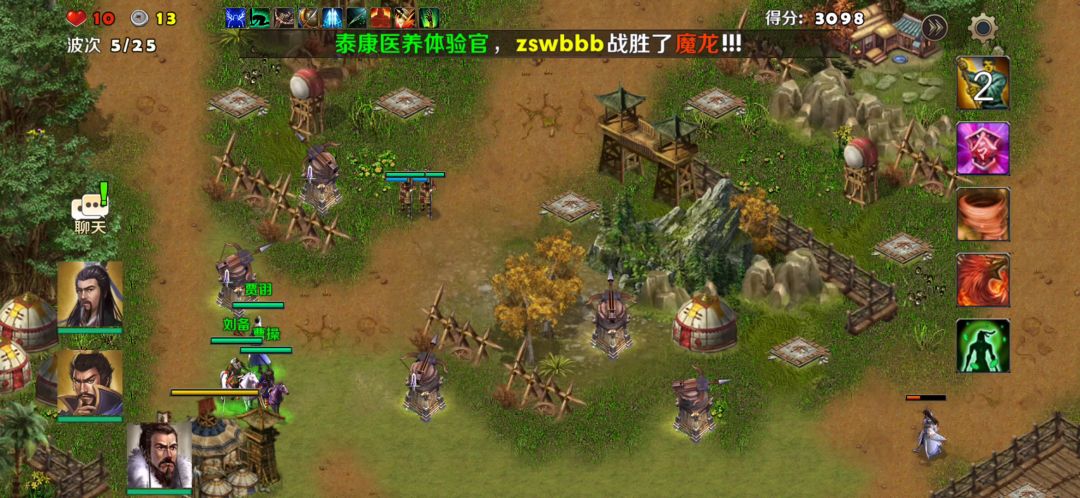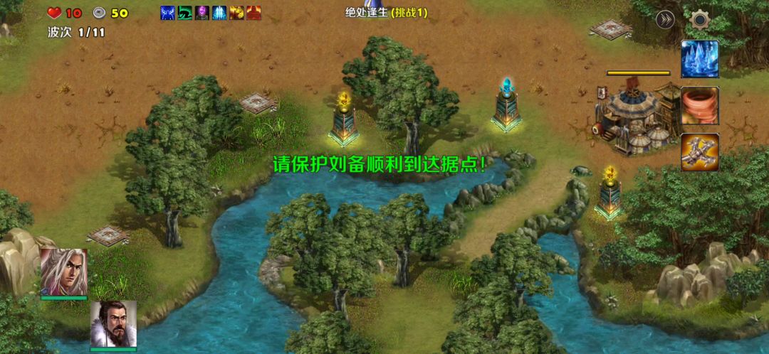 英雄:刘备、贾诩塔:天雷塔、冰冻塔卡片:练兵、破敌、弱敌、术塔精通打法:参考视频