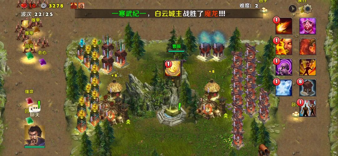 决战官渡难度2跟难度1一样,飞龙平推,看看充钱玩家的威力,就是英雄设定好不让你打基地,老夫也有办法让飞龙去打。3波完事儿,就是那么简单。所以你们还在等什么呢,还不赶紧氪召唤祝福?