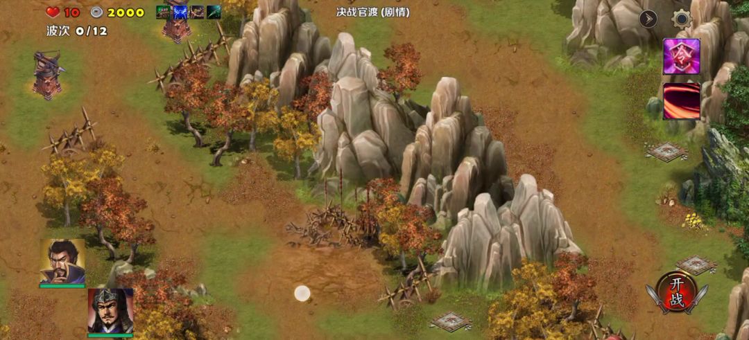 英雄选择刘备、关羽,防御塔使用剧毒塔、狙击塔,战术卡使用箭塔精通、修罗堡垒、强化毒素、亡命狙击、剧毒新星,英雄装备如视频所示。 进入关卡地图,首先在两边主要路口建造2座剧毒塔和2座狙击塔,剩下金币用来升级防御塔,两个英雄分开防守两边路口,一切准备就绪之后,开战! 开始敌人都是一些小兵不足为惧,两个英雄配合防御塔轻松击杀,随着一波波敌人被灭掉,收集到更多的金币,继续建造、升级防御塔,加强后方防守