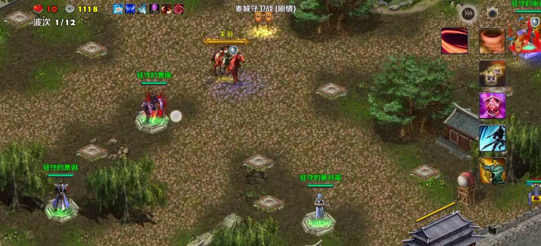 英雄选择刘备、关羽,防御塔使用剧毒塔、狙击塔,战术卡使用箭塔精通、修罗堡垒、强化毒素、亡命狙击、剧毒新星,英雄装备如视频所示。 进入地图首先在两边主要路段建造几座防御塔,两个英雄分开防守两边路口,一切准备就绪之后,开战! 开始敌人不强,英雄配合防御塔轻松击杀,获得金币,随着一波波敌人被灭掉,收集到更多的金币,继续建造、升级防御塔,加强后方防守能力,中间会有两个boss张飞、刘备出现,但是不强,