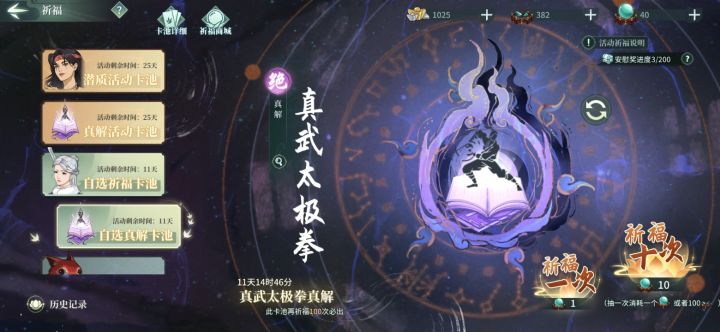 太极拳太难抽了吧,我就想抽两个,然后活跃点给他三突了。第一个保底出的,第二个难道还要保底,难顶,攒不了那么多珠子了
