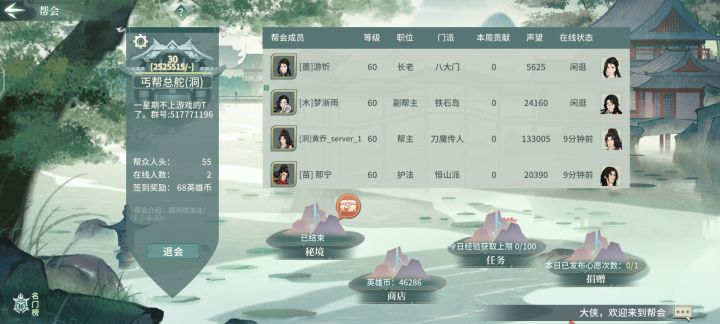 招新人,招打手,寻找能打帮会秘境的小伙伴。下图是本帮,顺便贴一下帮主和副帮主。群是大群,帮主一人管俩帮会,俩帮会都是自己人,群里有精通各种大佬为萌新答疑解难。还有刀魔忠臣,属实契合萌新啦,快来快来😘