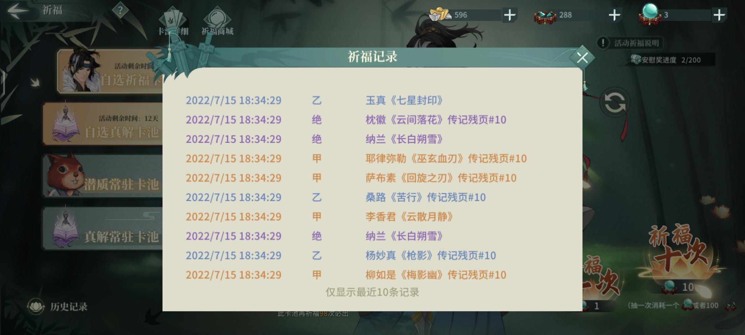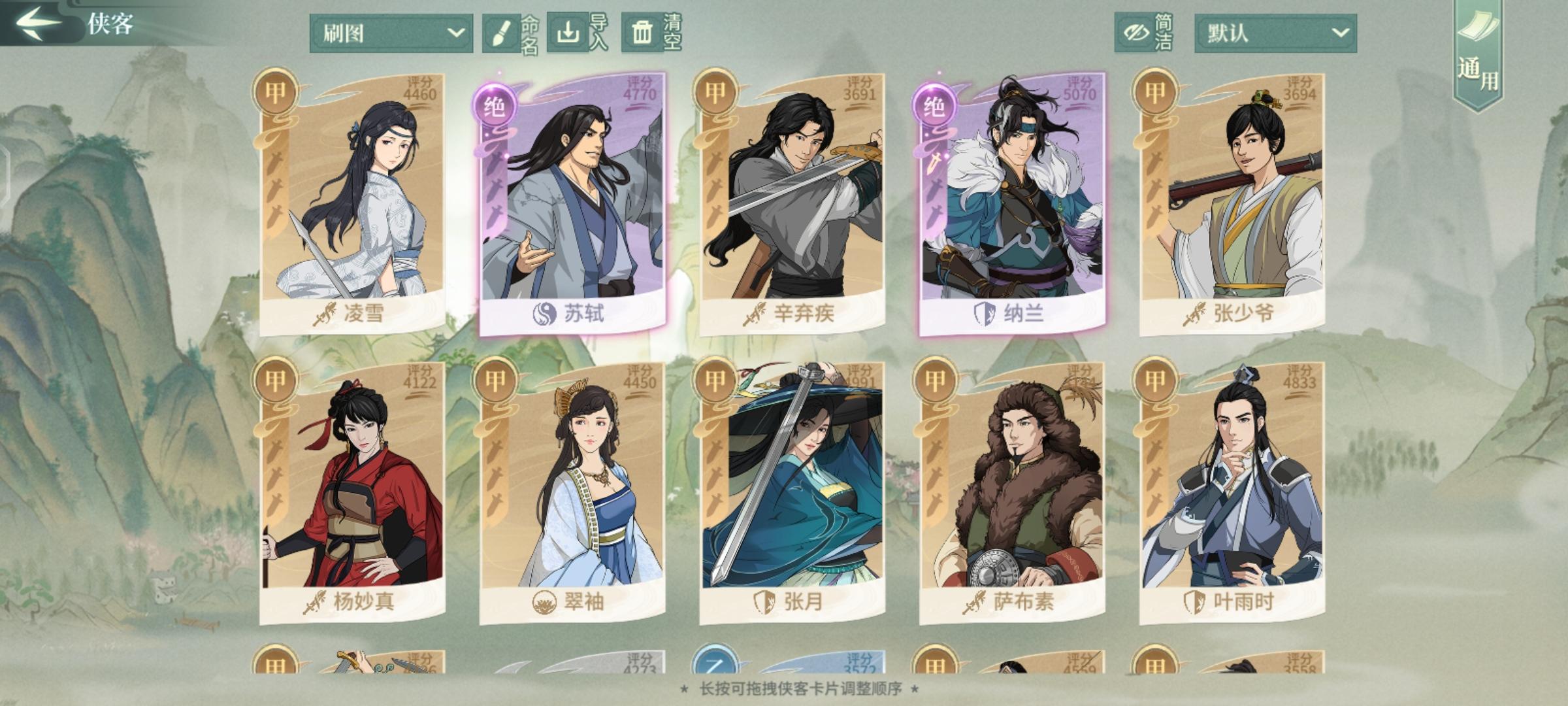 刚玩几天呢好不容易摸了一下午把萧无量第十章打过了,结果最后又跟这逼打被打的嗷嗷抽了几发也没有甲陆游,就指望这剧情送呢论剑也卡住了,希望尽快到2600拿点奖励,有什么好的推荐呢抽了纳兰33,要不要抽铃兰