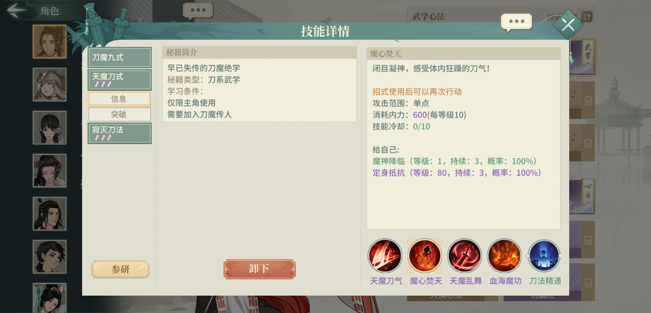 今天论剑我刀魔开二技能就没有触发过再动,遇到其他刀魔开二技能正常再动,论剑分从4164直降3997,遇到什么门派都打不过。(把技能卸了,重新装上就恢复正常了,下面的技能描述也发生变化了)