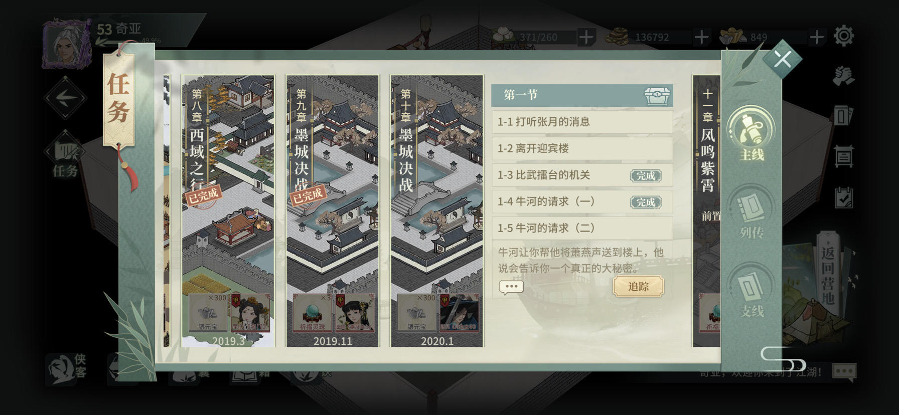 大佬们 这个后续在哪 是不是出bug了。墨城点个遍了 都没有后续 暗门擂台也点了没任务