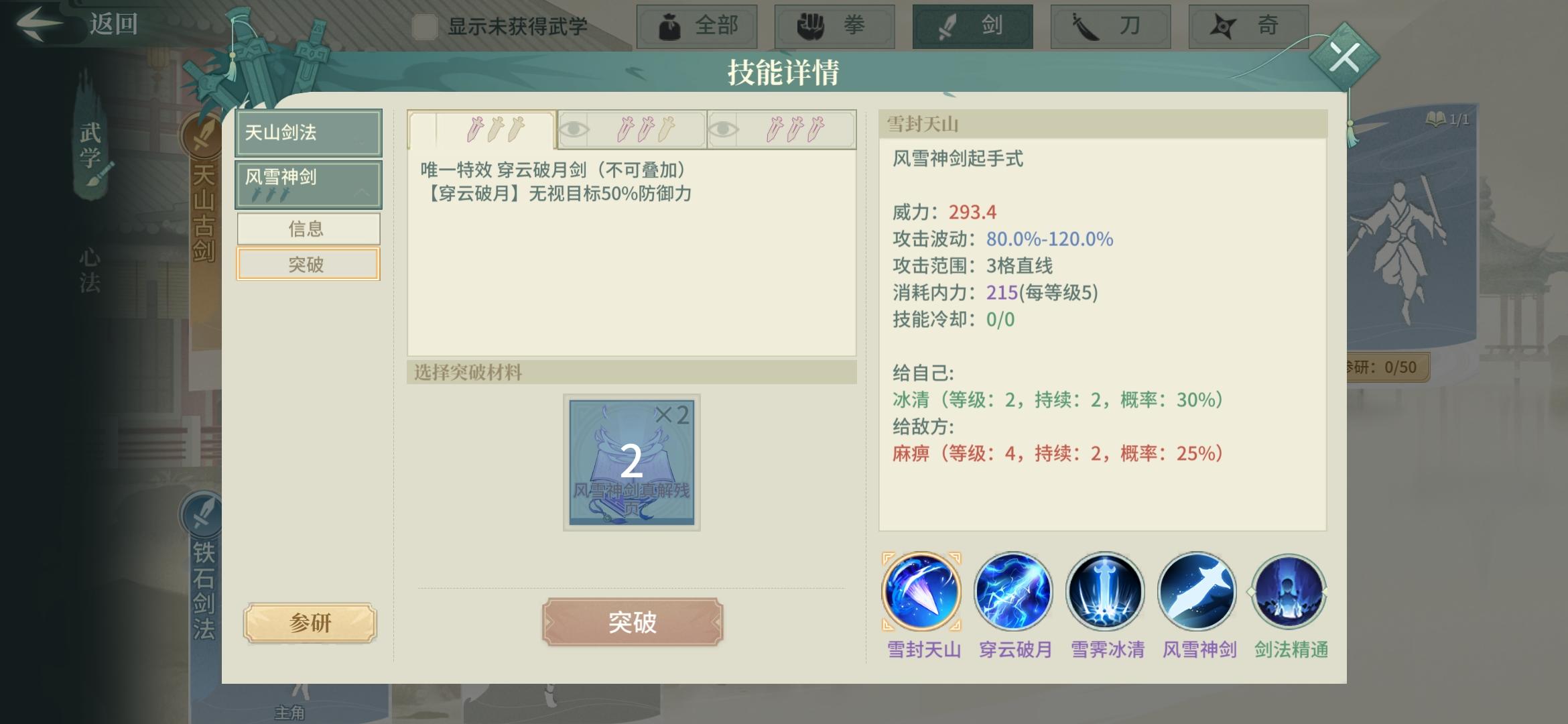 请问为什么风雪神剑突破不了呀,是有什么前置步骤没有完成嘛😭😭