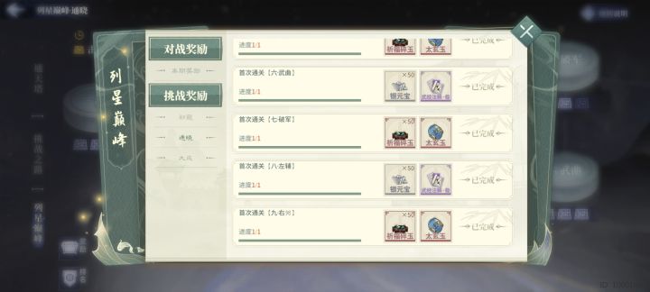 列星巅峰通晓和大成奖励是一样的吗?