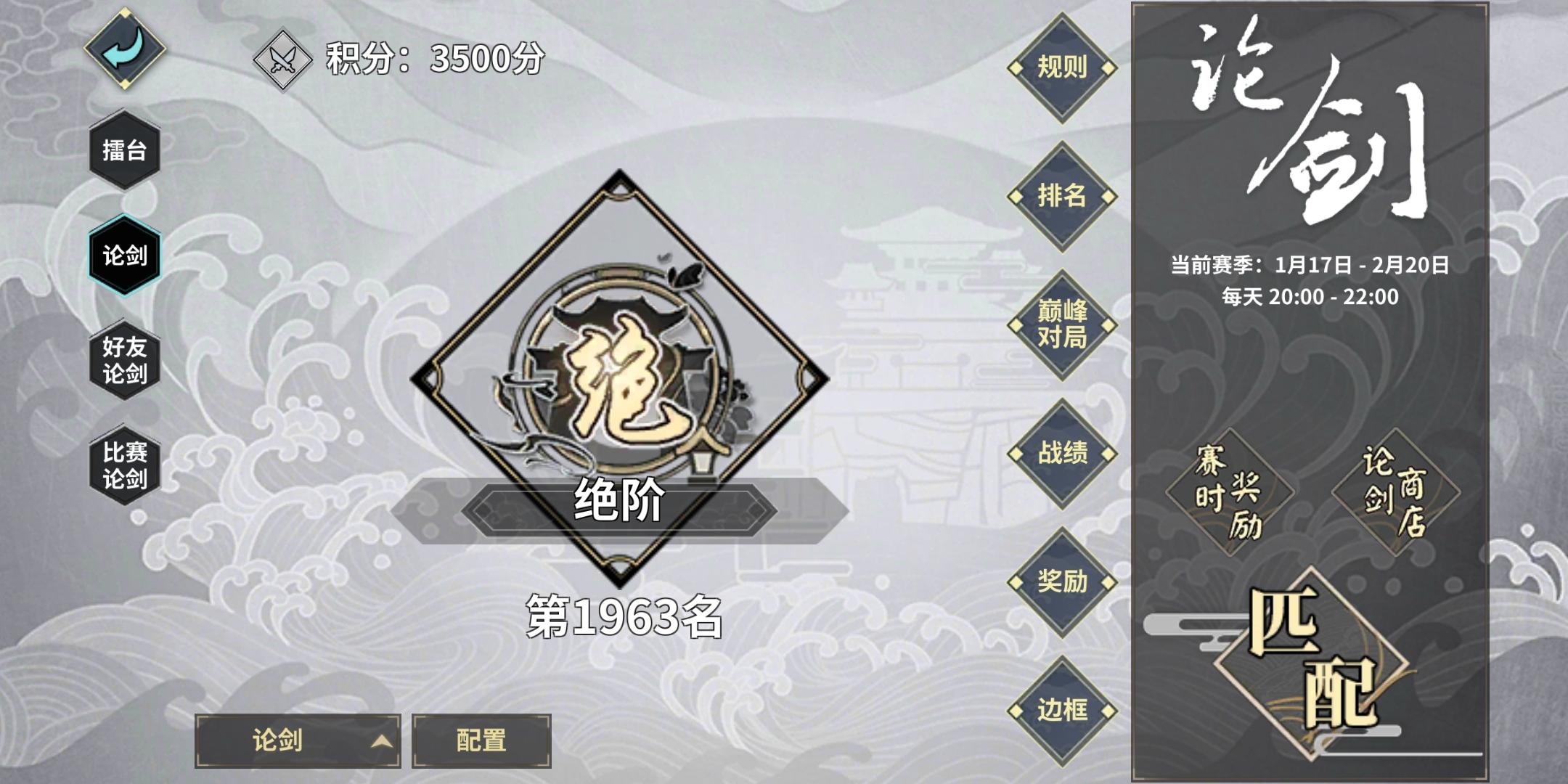 萌新第一次上绝拿皮肤,之前看到金x活动入的坑,活动结束后就没玩了,春节没事干看到好像要出2.0了又下下来玩(然后松鼠咕了)。一直是一个人瞎打,门派也是自己建的没别人,就搞了个小号给自己捐点碎片,有没有dalao愿意收留啊,论剑现在也是玩的不明不白的,不是很懂要怎么搭配和站位