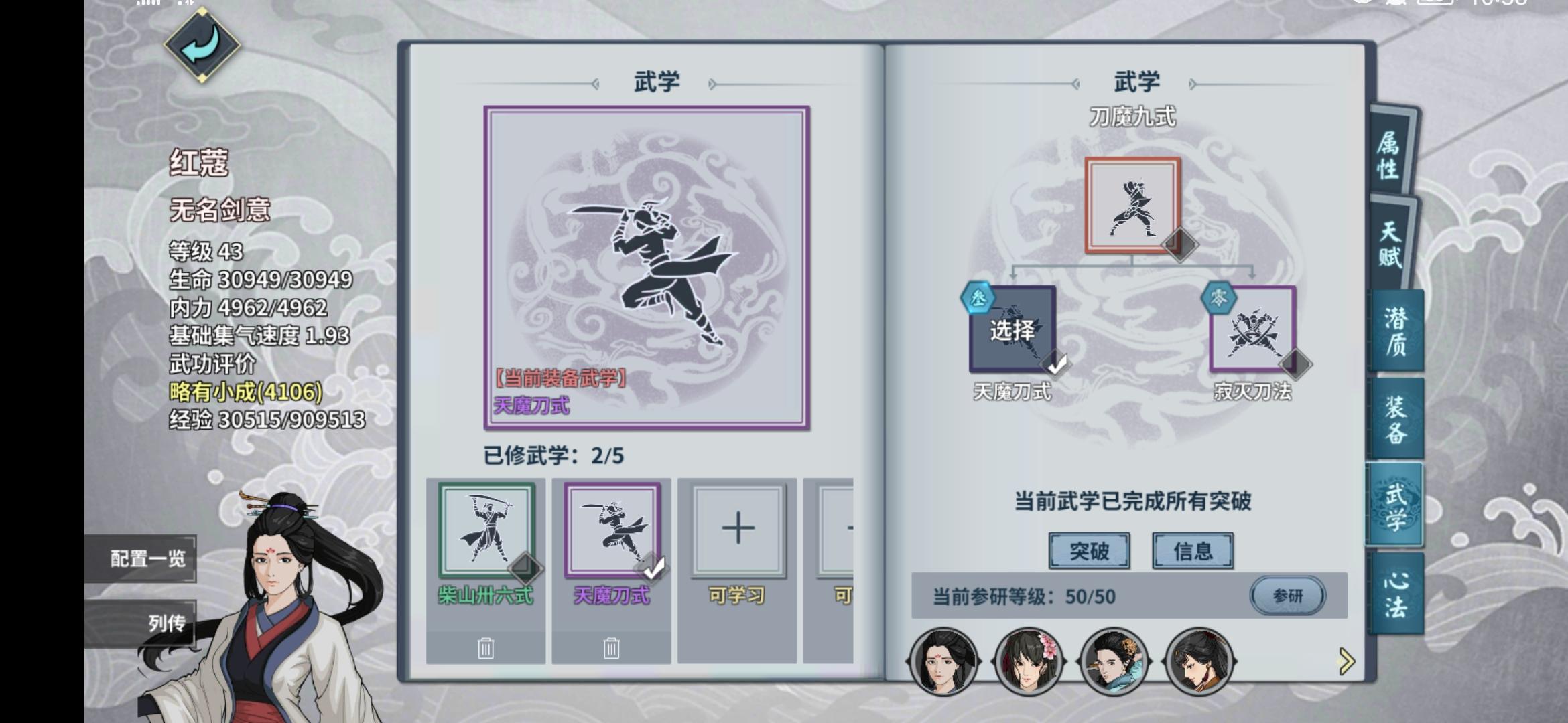 目前论剑只打到3200分 上不了3500 希望大佬帮忙配一下阵容本人刀魔主 目前论剑主力是绝2 3叶雨时心法用的是七旋功 清寒套绝琴0 2师姐 通玄功 幻影太虚配青莲枪3 3张良 洗髓 莲花棍3 3白衣 太极神功