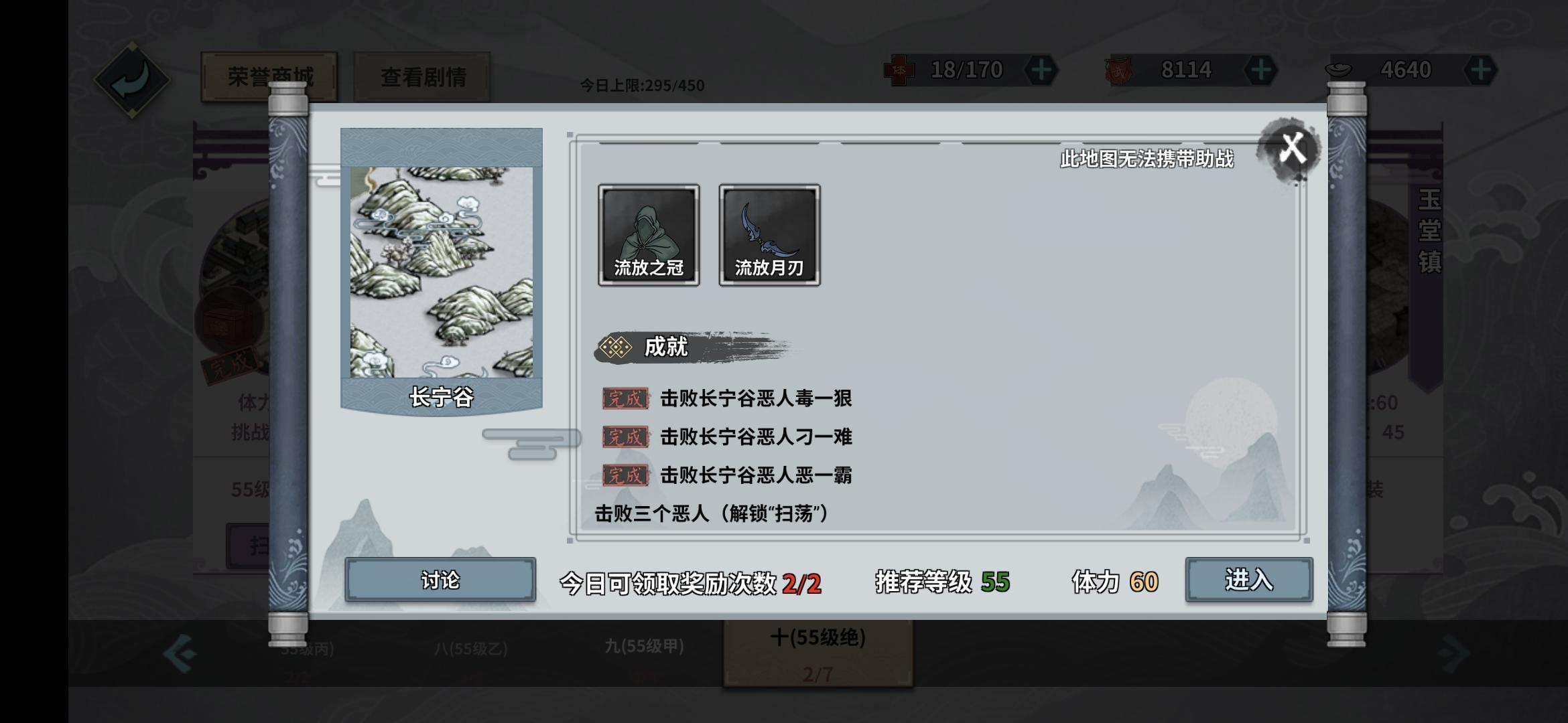 长宁谷打通了,怎么没解锁扫荡啊,找客服没回复啊。