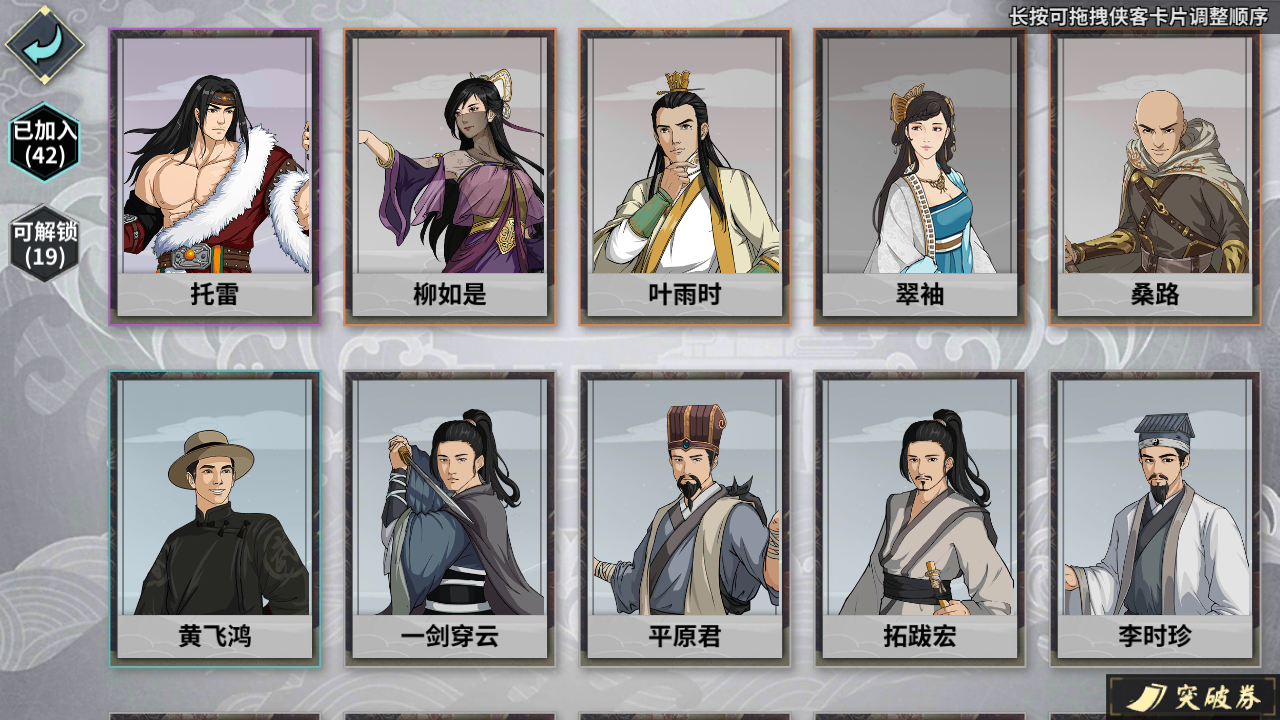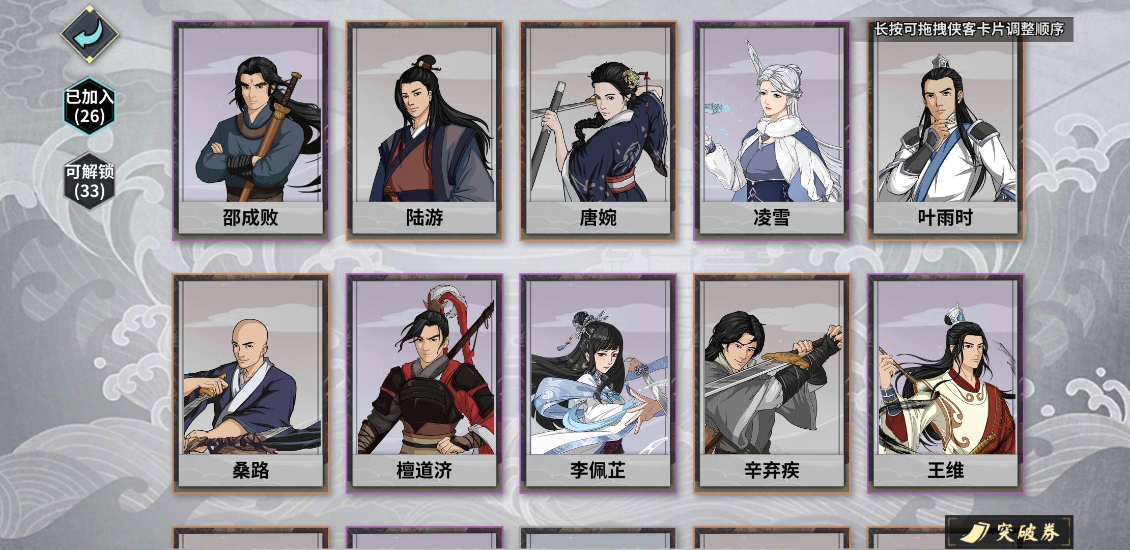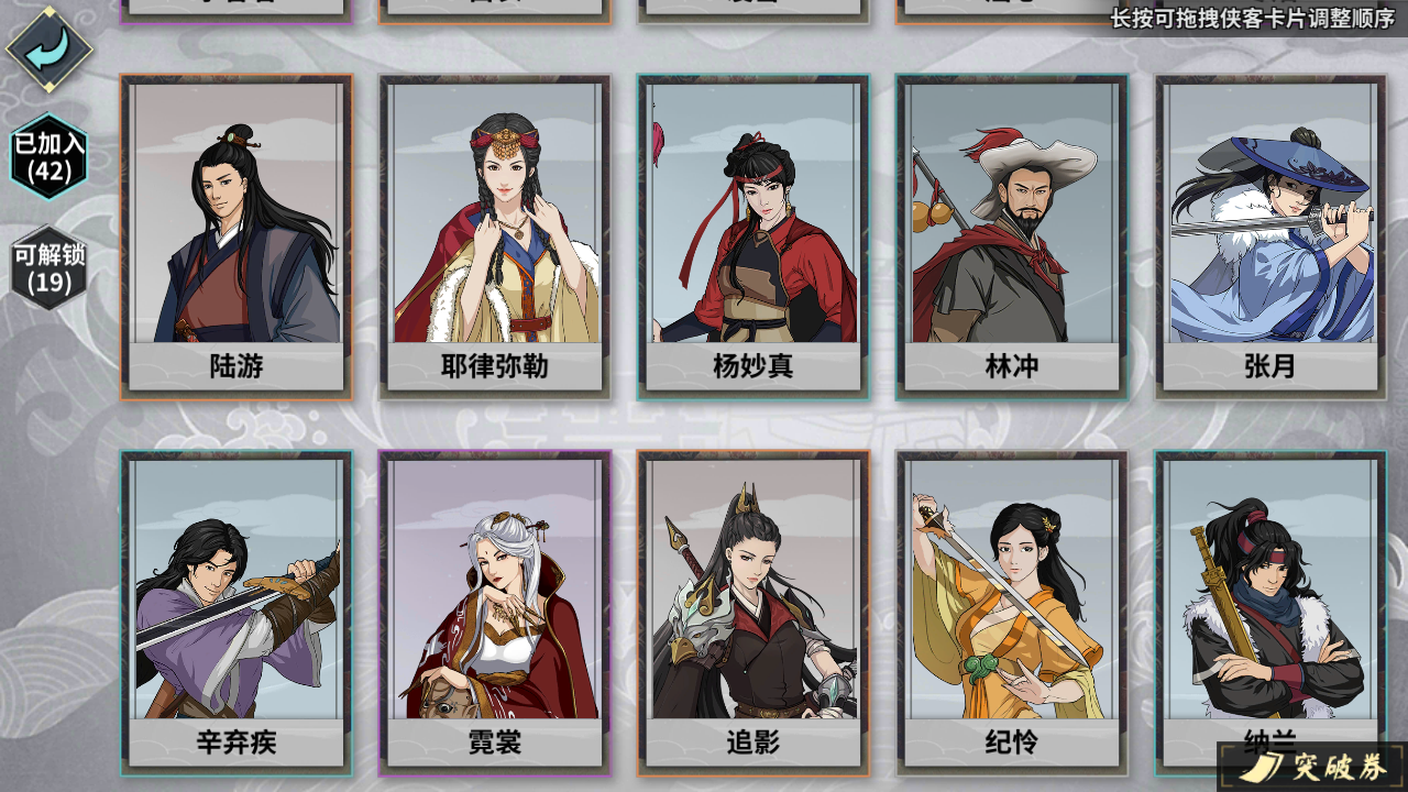 具体侠客有这些,但不知怎么配更好,我自己随便配了两套,请各位大佬帮忙指导一下下,谢谢