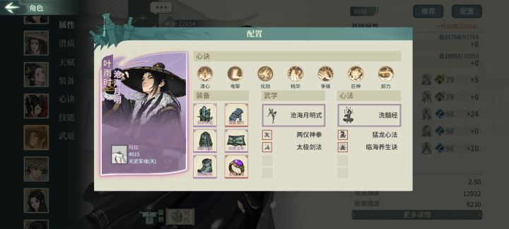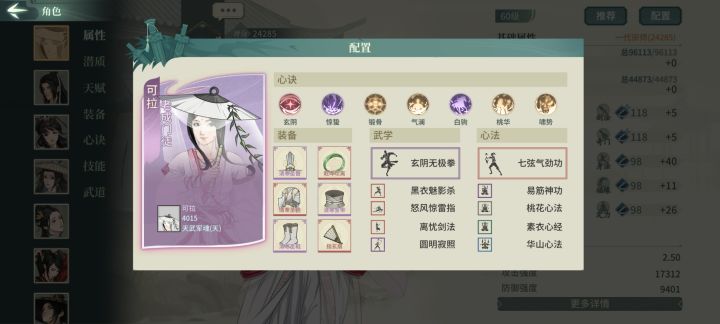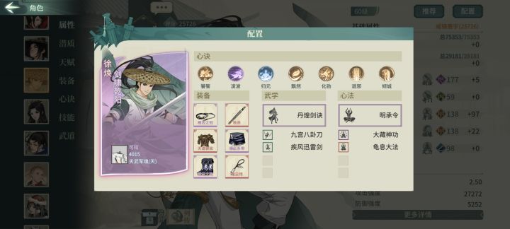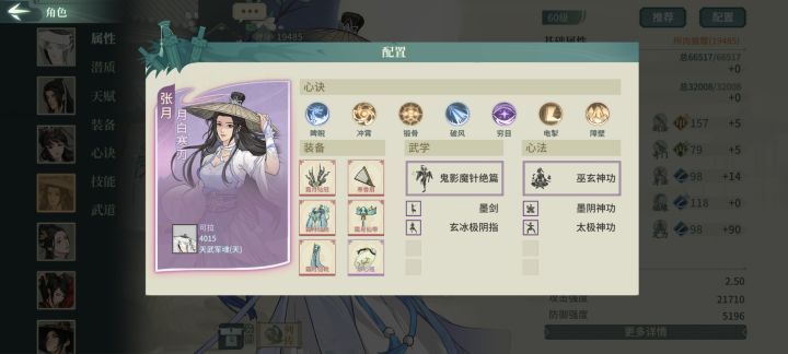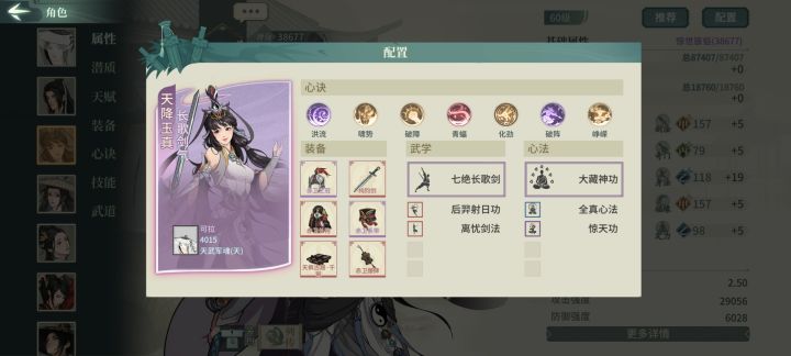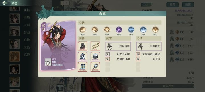 其实还是有氪的,氪了一块钱拿了无名套19天资源如下,极是昨晚上的,今天日常还没做,所以算19天OK下面开始正题,本篇配置主力为剑屈新凌雪迷桃,替补褚十五甲香君甲翠袖------------------------1.首先是遁甲plus的参商主洗练双身法,技能内4321,洗身法就是为了快,参商的先手还是挺重要的,先一步开大藏胜算更大,这里如果极参资源够,大藏可替换洗髓,大漠