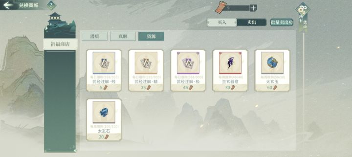 新区玩了一段时间了,也发现同为萌新的许多人不太了解怎么样将自己的资源转化为战力,故发此贴。1.首先是多余的真解和潜质,这个可以转化为武精注解极(简称小极书)在祈福上面有个祈福商店,商店里选择卖出和批量卖出功。关于真解要留什么,参考克己守心大佬的帖子关于极书用法,我个人意见是优先主角的使用武学和心法,之后再给其他主力的武学和心法。2.挑战之路优先刷55级的副本因为60副本后两个箱子都不是