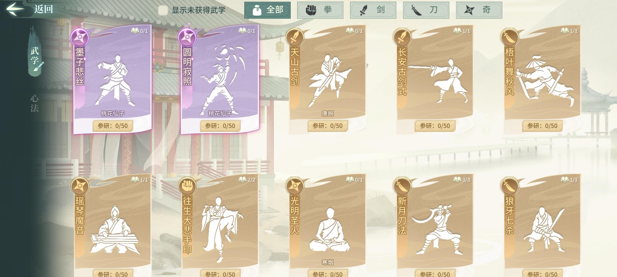 曲玉,枕徽,摩诘诗画,楚狂,莫失莫忘, 5选2的话选谁啊😁目前一个都没有。有三突太极拳,藏渊三剑0突