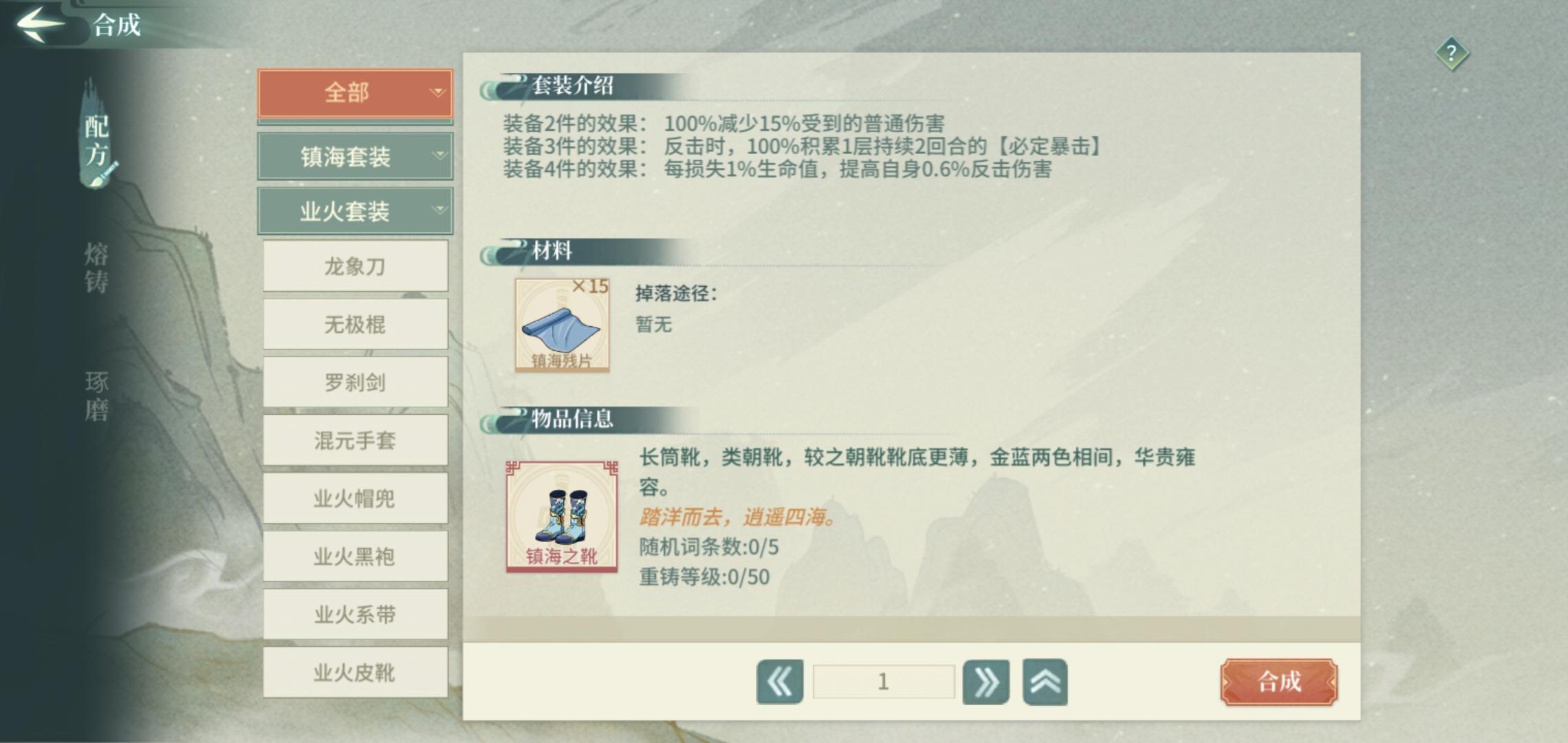 ps:新增单品鞋推荐——镇海鞋。通过使用藏拙来,定期获得必定暴击。出拳的时候使用必定暴击致使buff消失,以此获得守缺盾(3820)