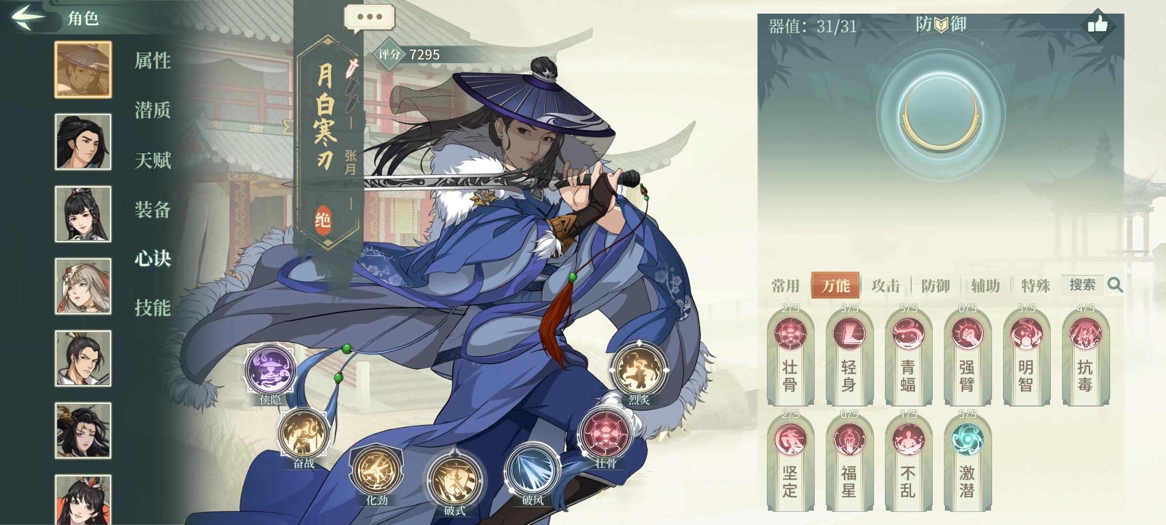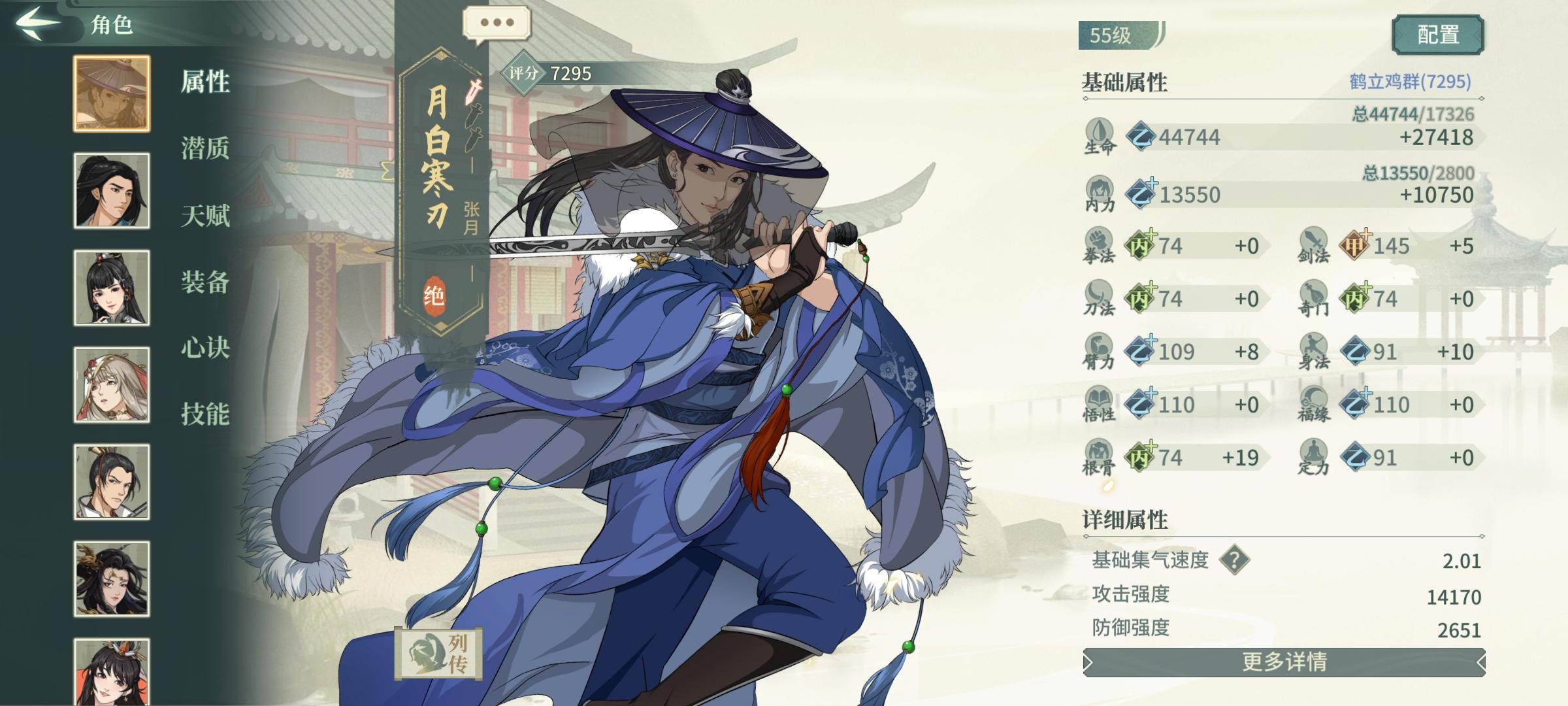 有没有大佬指点一下张月的装备和心诀怎么搭配,我把现有的高级装备给上了才7000评分出头,隔壁李师姐随便搭配一下就8000评分了,不理解😔