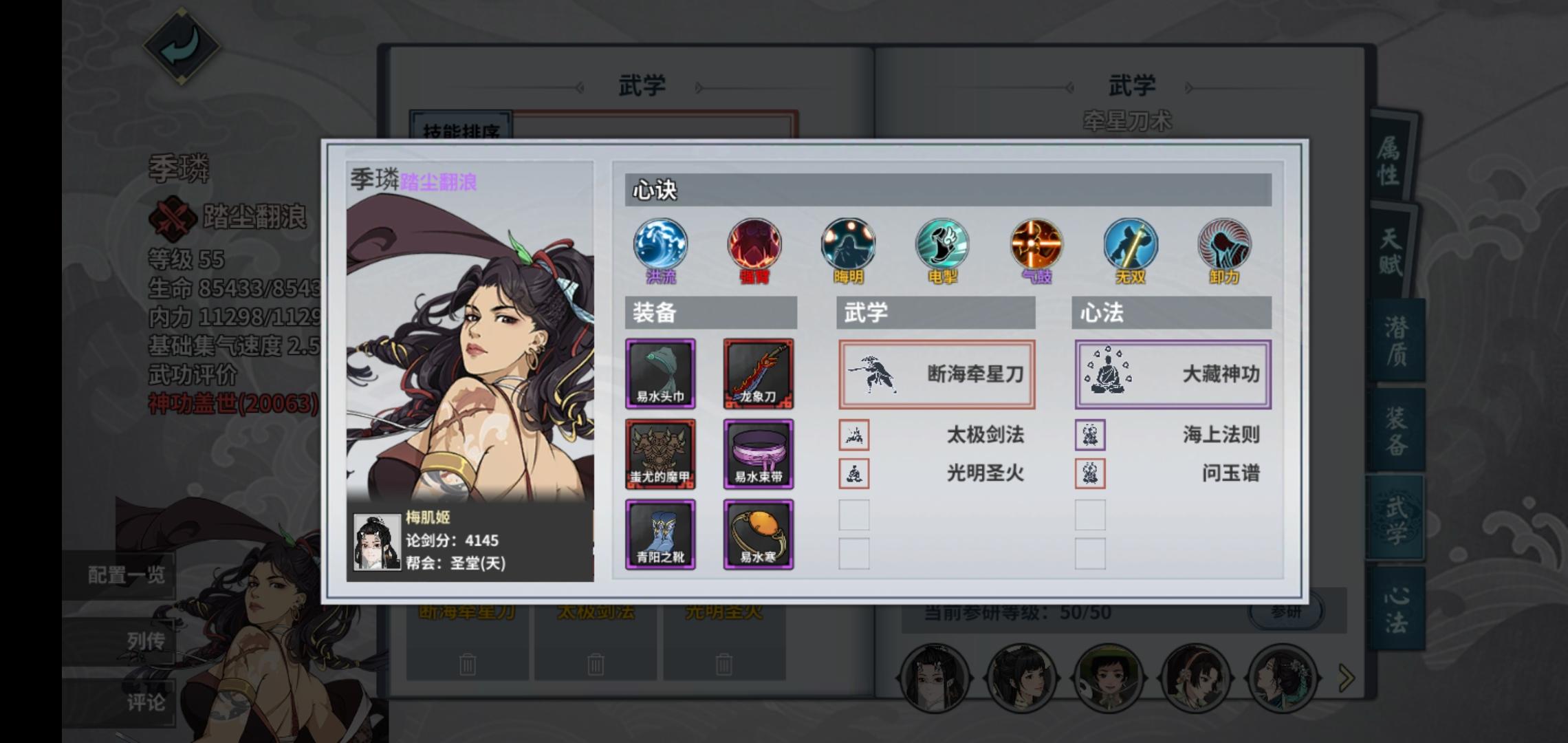 适用对阵场合,八门,河洛,恒山,阴拳等武学输出性质平滑稳定场合。惧怕速推侠客及门派(谁不怕?),反感张月张少爷等穷目选手(手不够长)