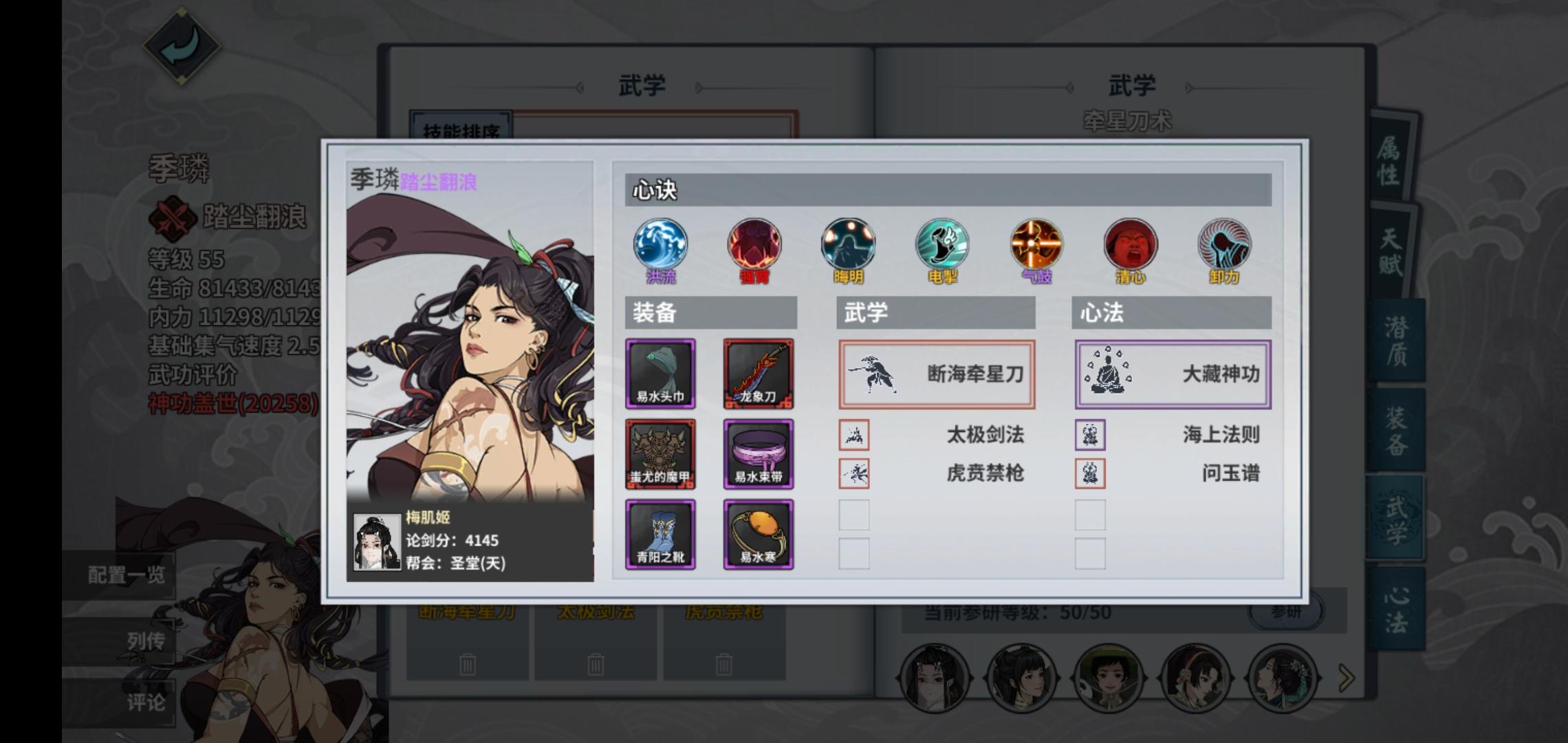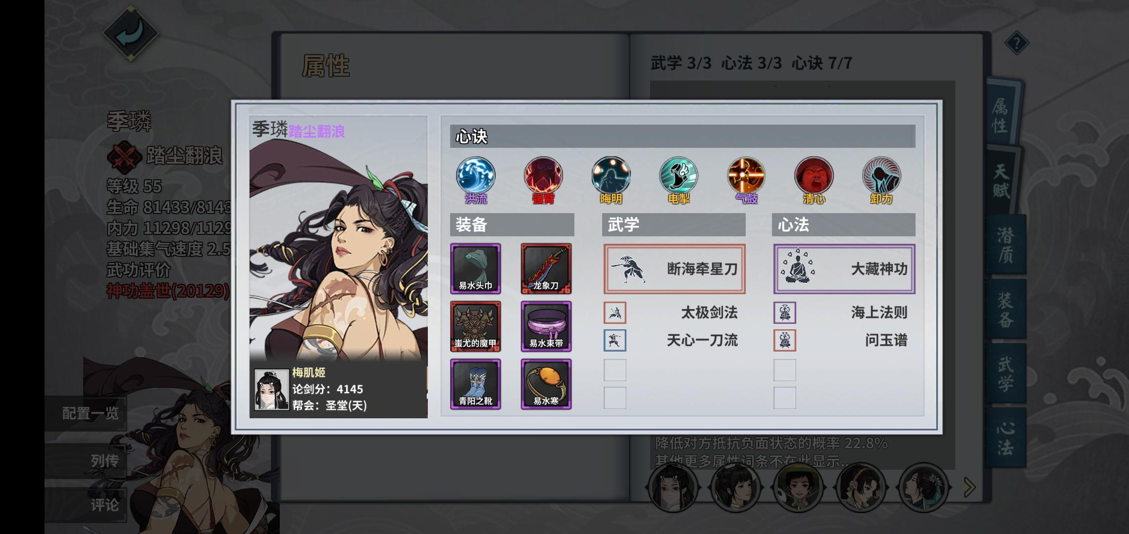 推荐使用长荒易水寒(普通易水寒不要技能威力,洗晕抗/减暴击伤害)