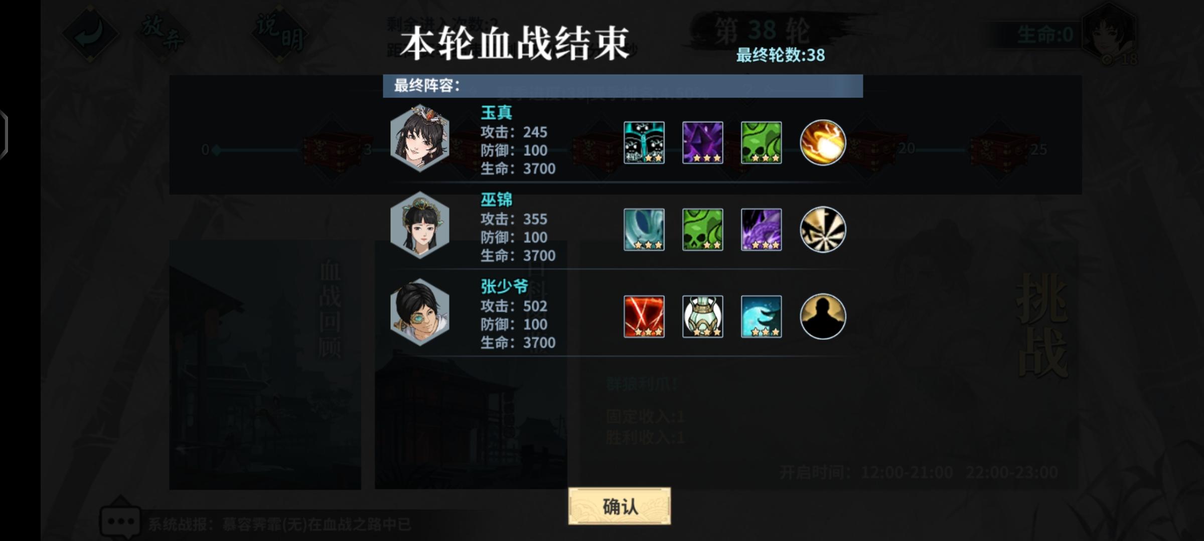 真好,记录一下第一次打这么多场😋用了论坛里遗鱼大佬的攻略!!非常感谢!!毒爆流还是很好使的,但是遇上玄武铁卫分分钟歇菜。或许我不应该太贪心,啥好东西都想留着,应该把金蟾换成叠盾的?