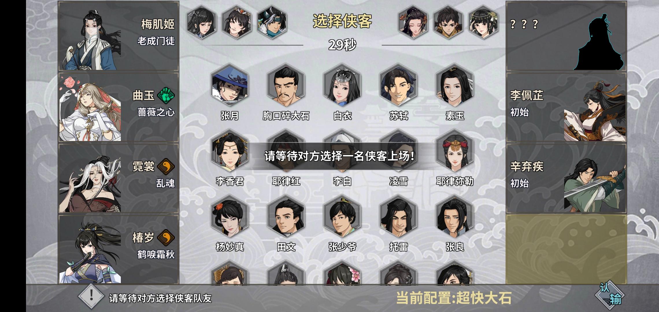 此配置仅适用于防香君二速阳拳车,稳定的起手长荒一剑安排第一行动,然后以稍低于阳拳的身法放出古剑叹息,及时清掉第一波控制,