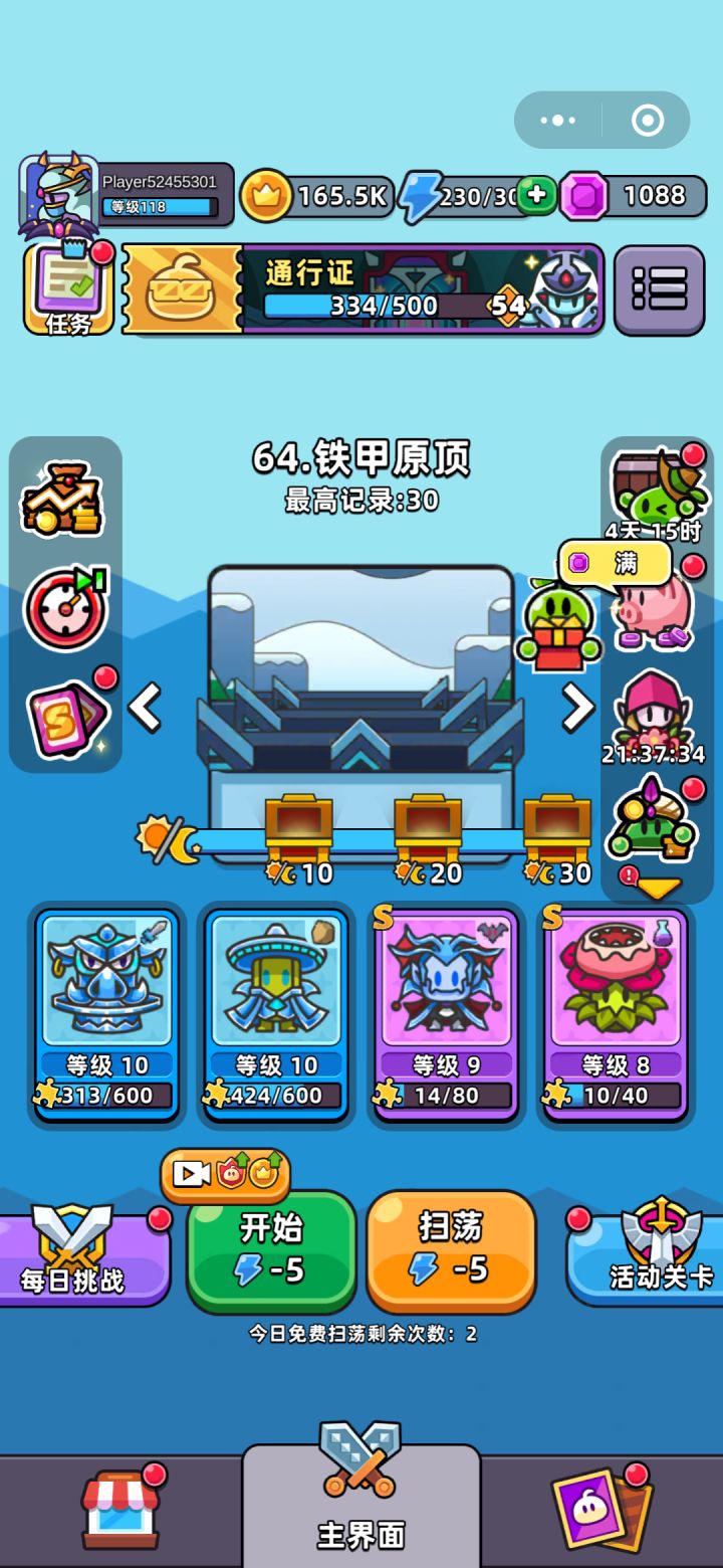 64关阵容,前十天靠德古拉打小兵,前两个boss走过去都没事,第11天开始主要仙人掌#勇闯要塞