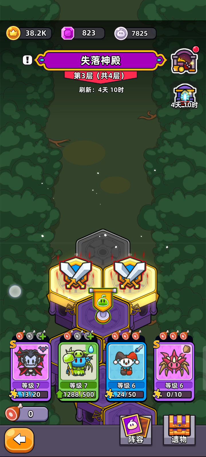 勇闯要塞是一款融合了合成、肉鸽、塔防、战斗等玩法的休闲游戏,通过不同角色的召唤和养成,不断提升自身战力,通过对不同角色的排兵布阵,来守卫领地,打击敌人,收获快感。世界观游戏讲述了一群身怀绝技的小精灵被世人抛弃,想逃到怪物森林的要塞中生活,却又遭遇来自所谓英雄们的入侵,于是团结一致奋起反抗勇闯要塞的故事。玩家可以化身怪物森林里的小怪物,通过角色的召唤和升级,组建自己的怪物军团,通过不同的阵容搭配