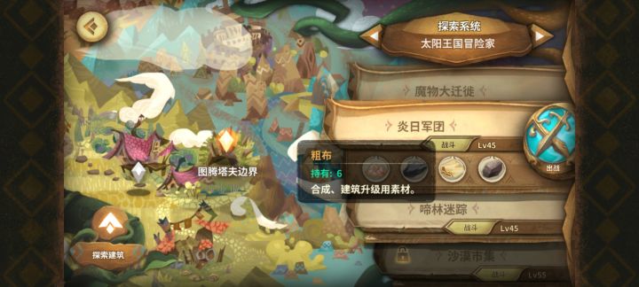 这个粗布炎日军团哪里能弄到,别的都还好,探索那里不会玩呀,到现在我都不知道那个任务做完没有…还有那个任务做完需要升4级以后的装备还需要刷材料吗?求教了…