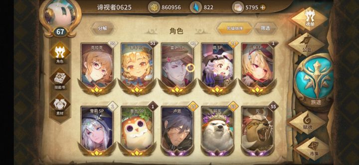 幻境基本上在17400左右,离25差200分以内,迪兰没2强的话感觉也就差1t,影响不是很大。现在主要差852,洛杰用在别的地方的话就20t左右,想问问夏洛克sp,苏菲,罗杰sp(已经071),库尔(没有deemo),碎牙这几个先刷哪一只比较好呢