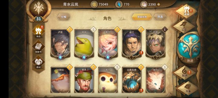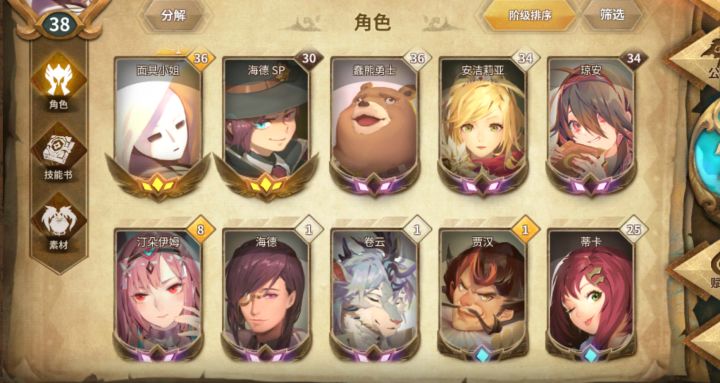 看了攻略,还是不太会配对。试了几个队伍,BOX如下:可怜就一个金雷萨sp.😨现在在用的角色:汀朵伊姆,卡莲,梨花,希欧。战之介和吉哈萨哈,出了好多个😣海德看着挺帅,但没回复,开荒不好用,梨花牛🐮。其他的感觉还不如御三家和公主。不包括雪尔森。勇弦比较看好。