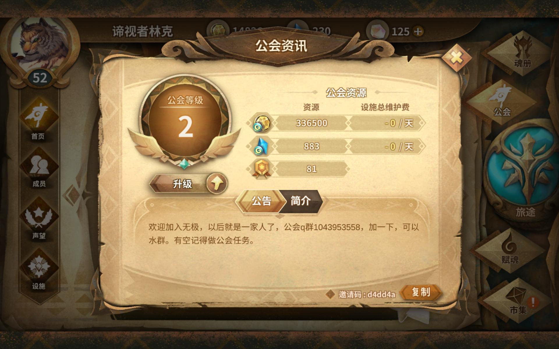 感兴趣的小伙伴可以复制邀请码在游戏里面申请公会邀请码 f8f9e3
