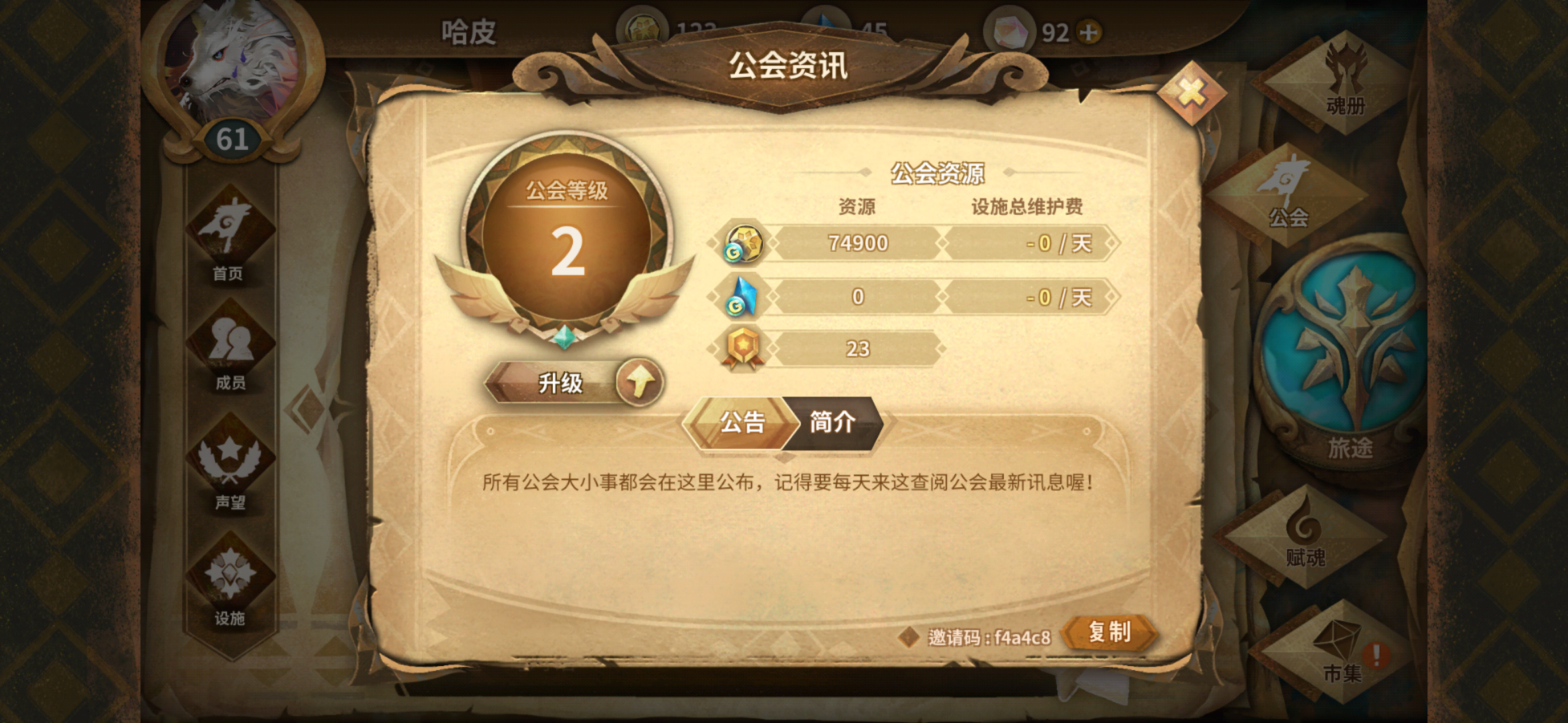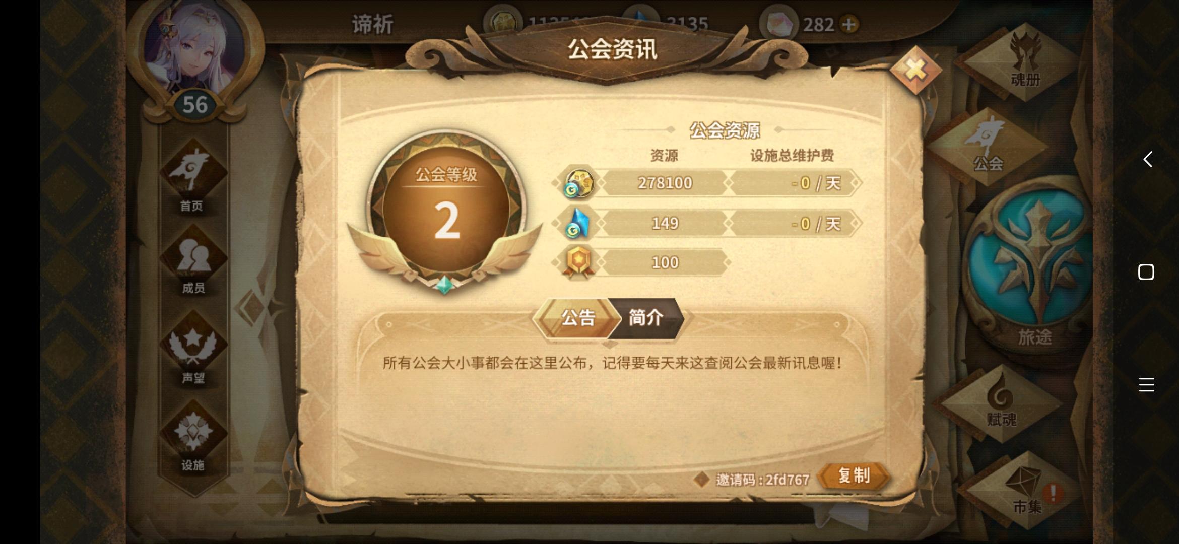 【公会】娜迦王天下第一【邀请码】5ee224八级公会又㕛叒来招人水群了,会里还有一半的死鱼正在清理,每天会清出三个入会名额。今天的已招满,明天还有两个坑位,有想要水群的小伙伴可以加公会微信群提前占坑哦 要求尽快升到声望5,必须做完每天的公会任务,公会维持不易望见谅 ,目前除了透镜石和书签设施都开了,蓝碎超一万即开透镜石,欢迎萌新和回归大佬们一起来建设公会
