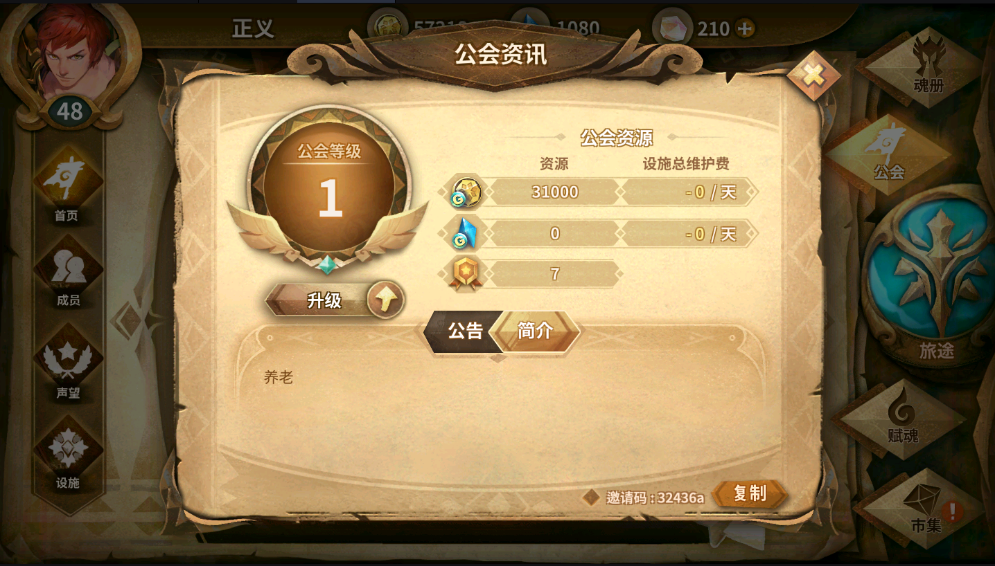 流年未逝公会成立啦,加入公会无任何要求,有任何疑问也可以找会长和副会长,有建议可以随时提出,萌新大佬快康康我们吧!活跃热情的公会氛围,闲适宽松的公会要求,巨大无限的公会潜能,你还在等什么呢?赶紧加入我们吧!!!我是本公会的副会长,有事可咨询我喔!邀请码:2fd767