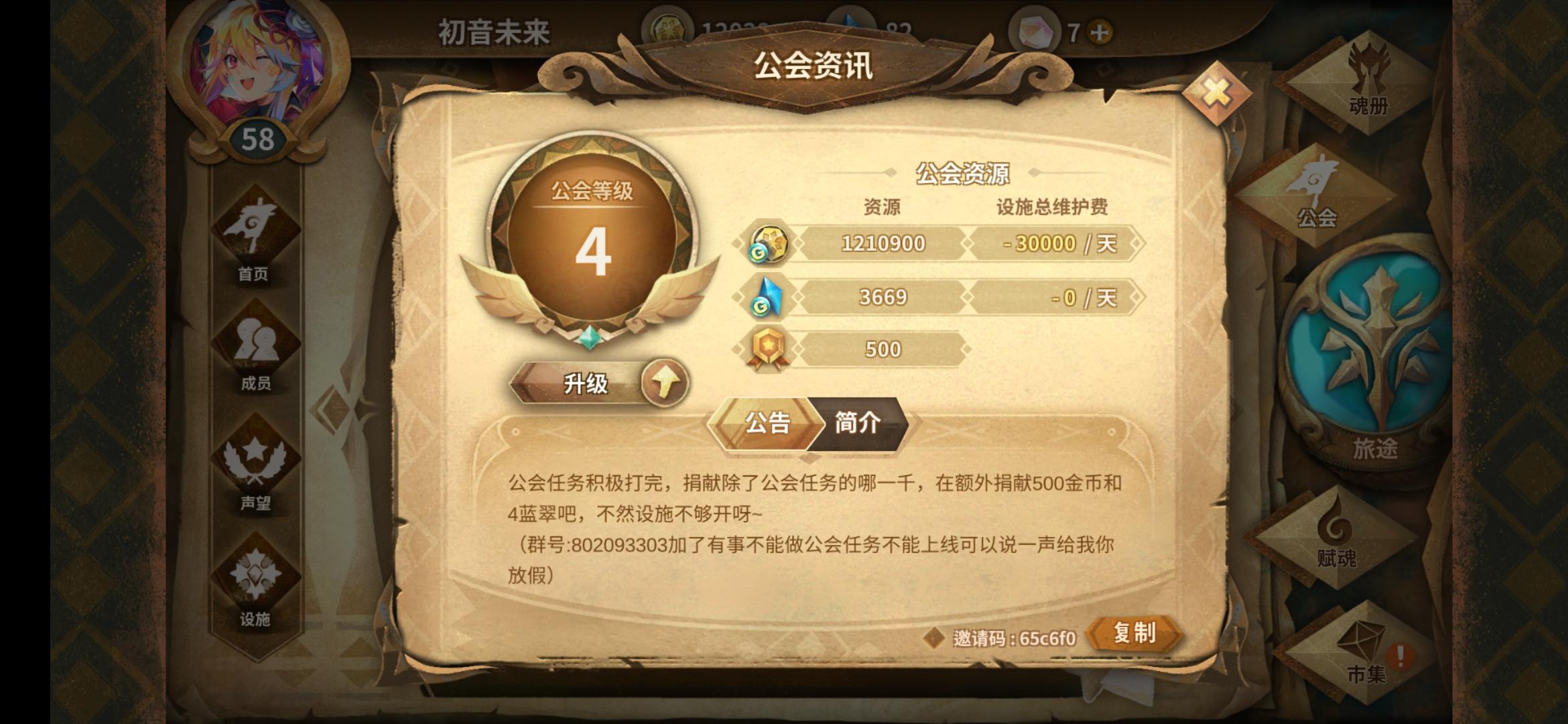 万象物语公会邀请码3e1571 公会收人 有意者可加QQ群1079840589 或直接加公会,暂时有空位,先到先得