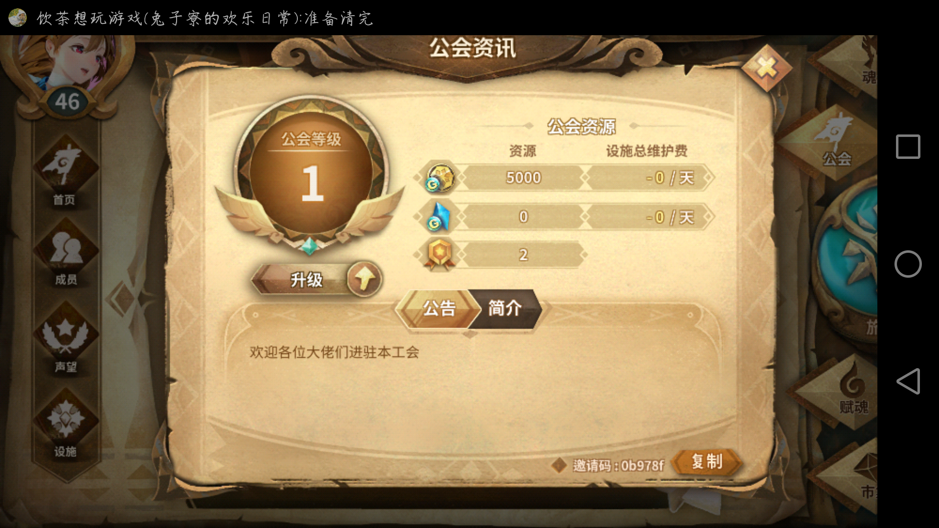 有一起玩的萌新吗?刚刚创建的公会:慵懒的小酒馆 欢迎你 qq群号:981569959 公会邀请码:32436a