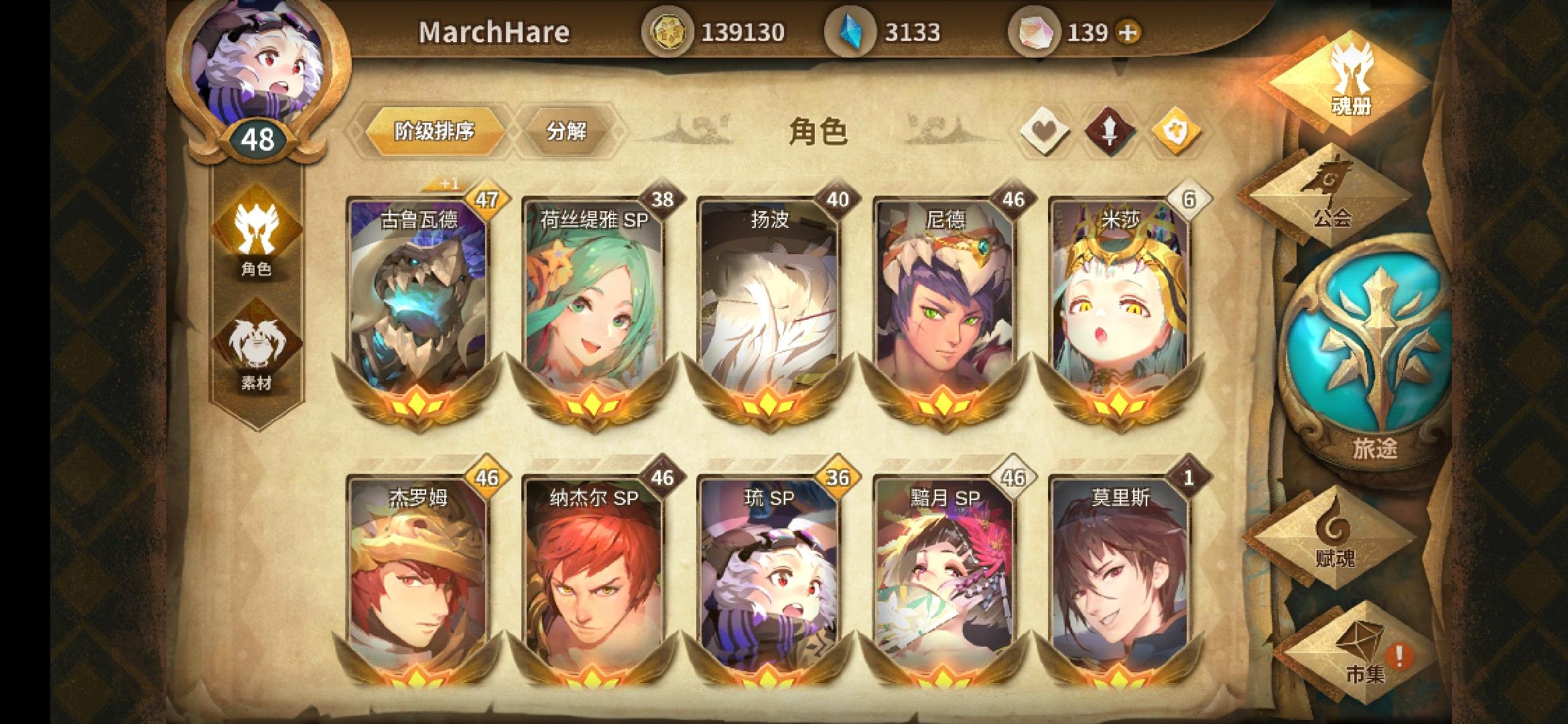 目前金色就这几个求一个公会 短期内应该都会比较活跃我在游戏里加了一堆申请都没有通过的角色我都是凭个人喜好练的没管什么阵容不阵容的