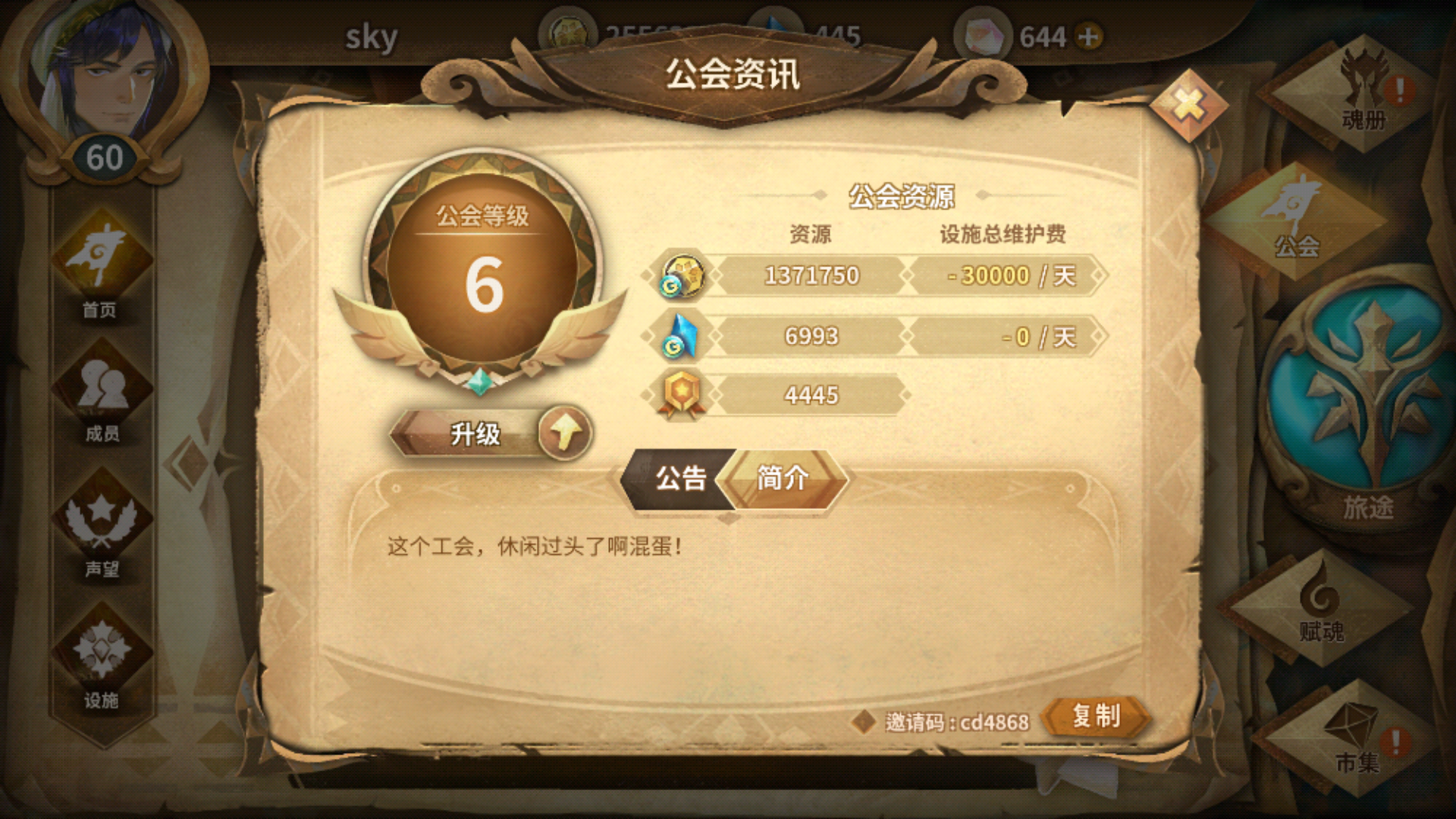 我46级,基本天天玩,有工会要我吗?我申请的全把我拒绝了π_π邀请码还有14次