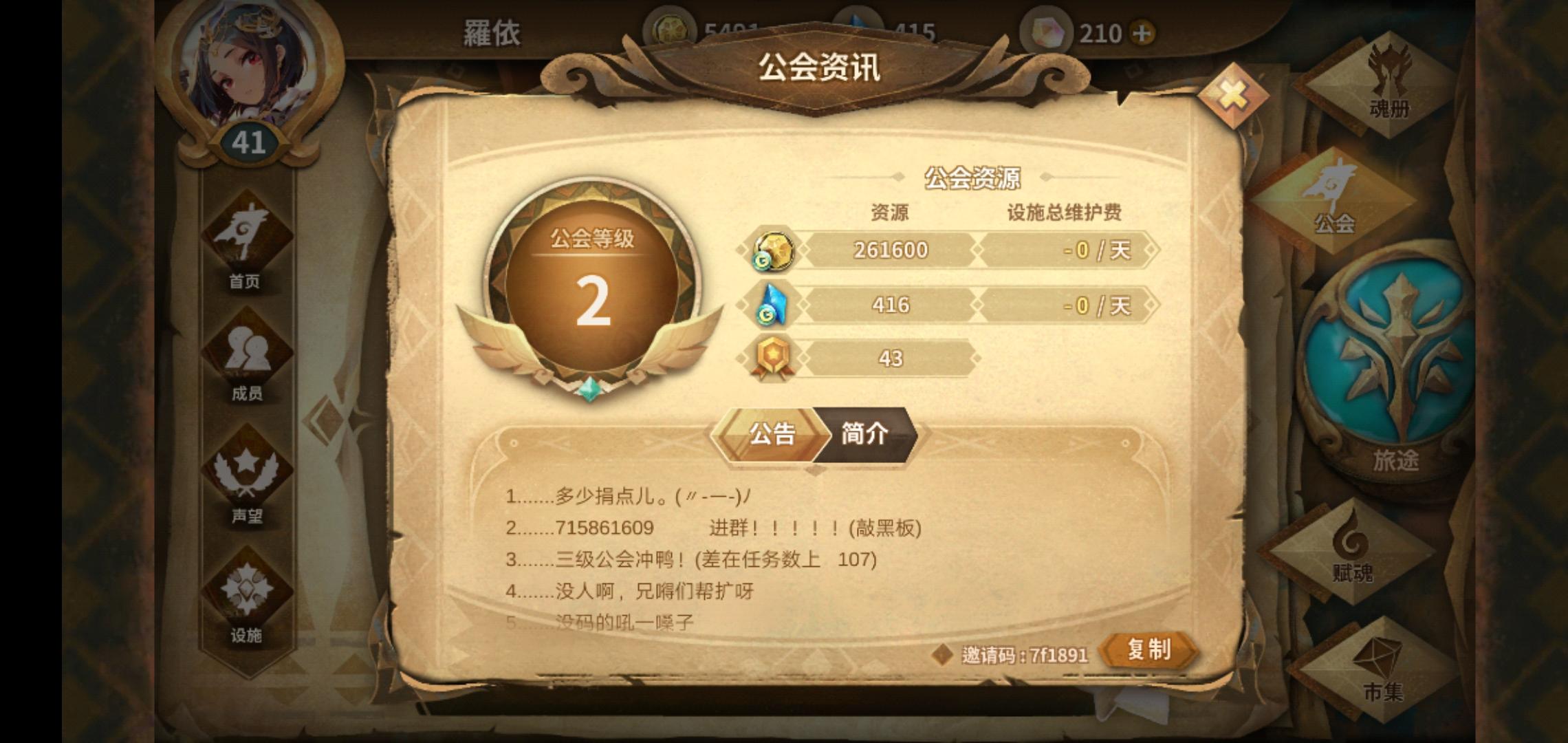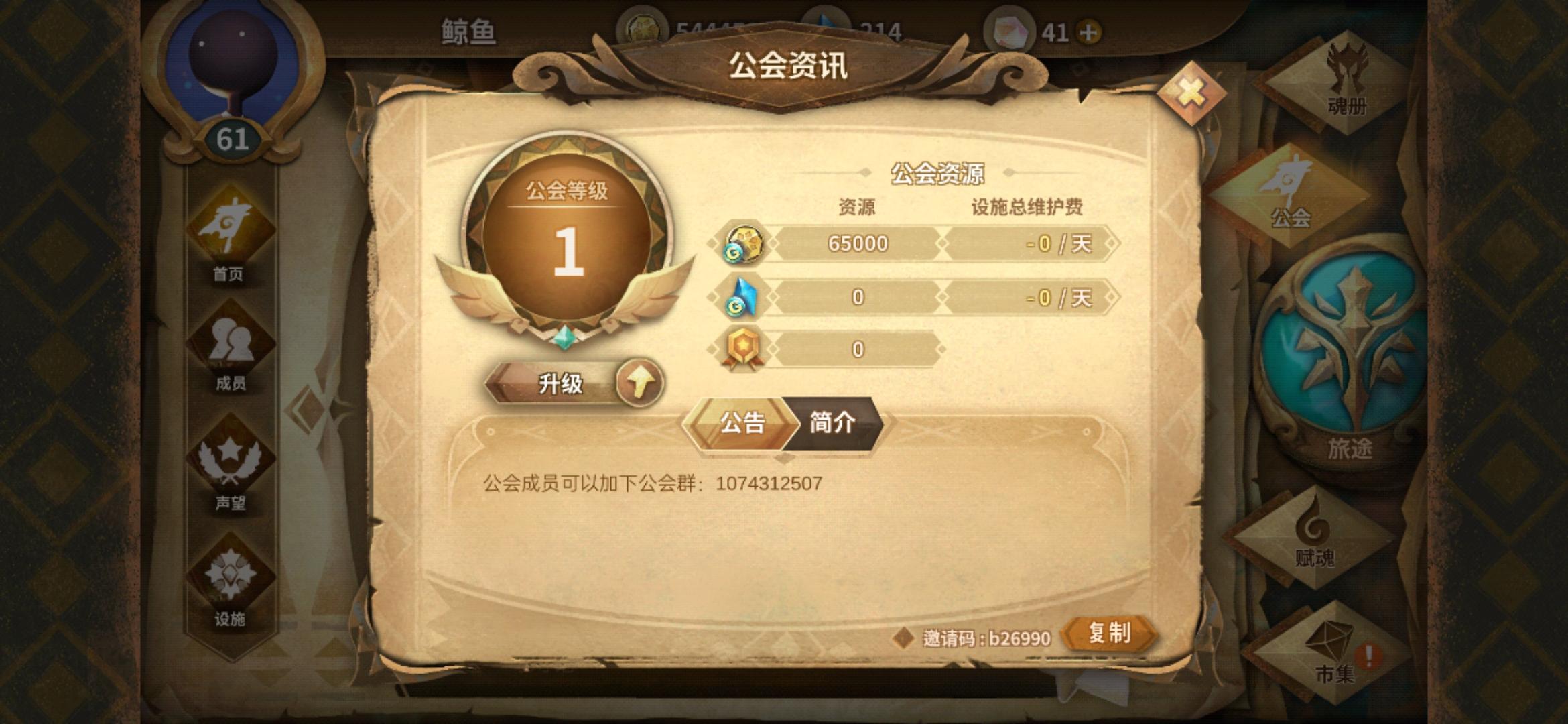 是的你没看错 1级公会 本人公测老玩家退坑两次 大佬们萌新们 真没地方去来我这啊 🙂🙂🙂求求你们😭快来啊 公会邀请码:b26990公会QQ群:1074312507