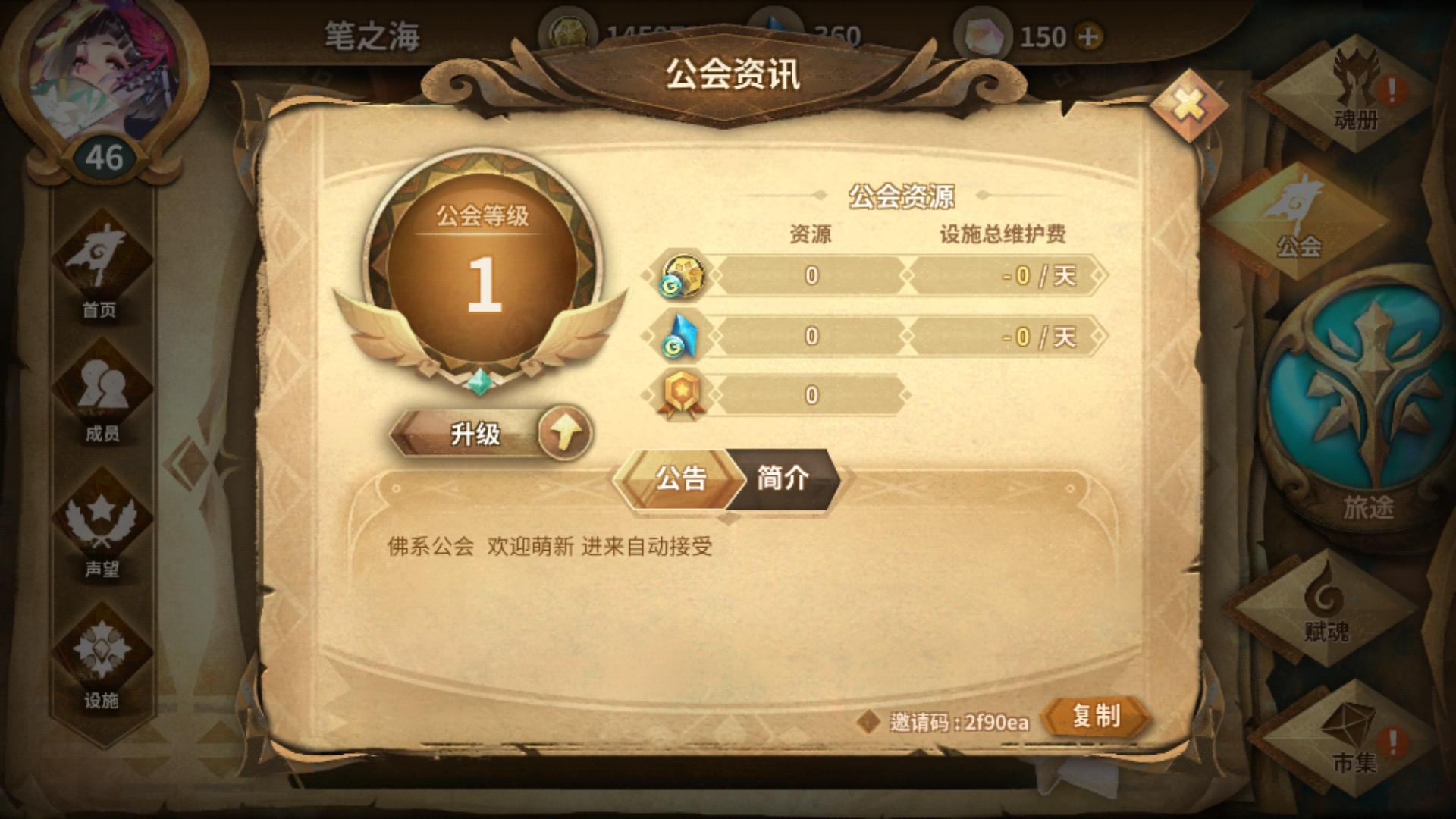 新公会招人啊邀请码65c6f0,不要求捐献多少,公会任务做了就行