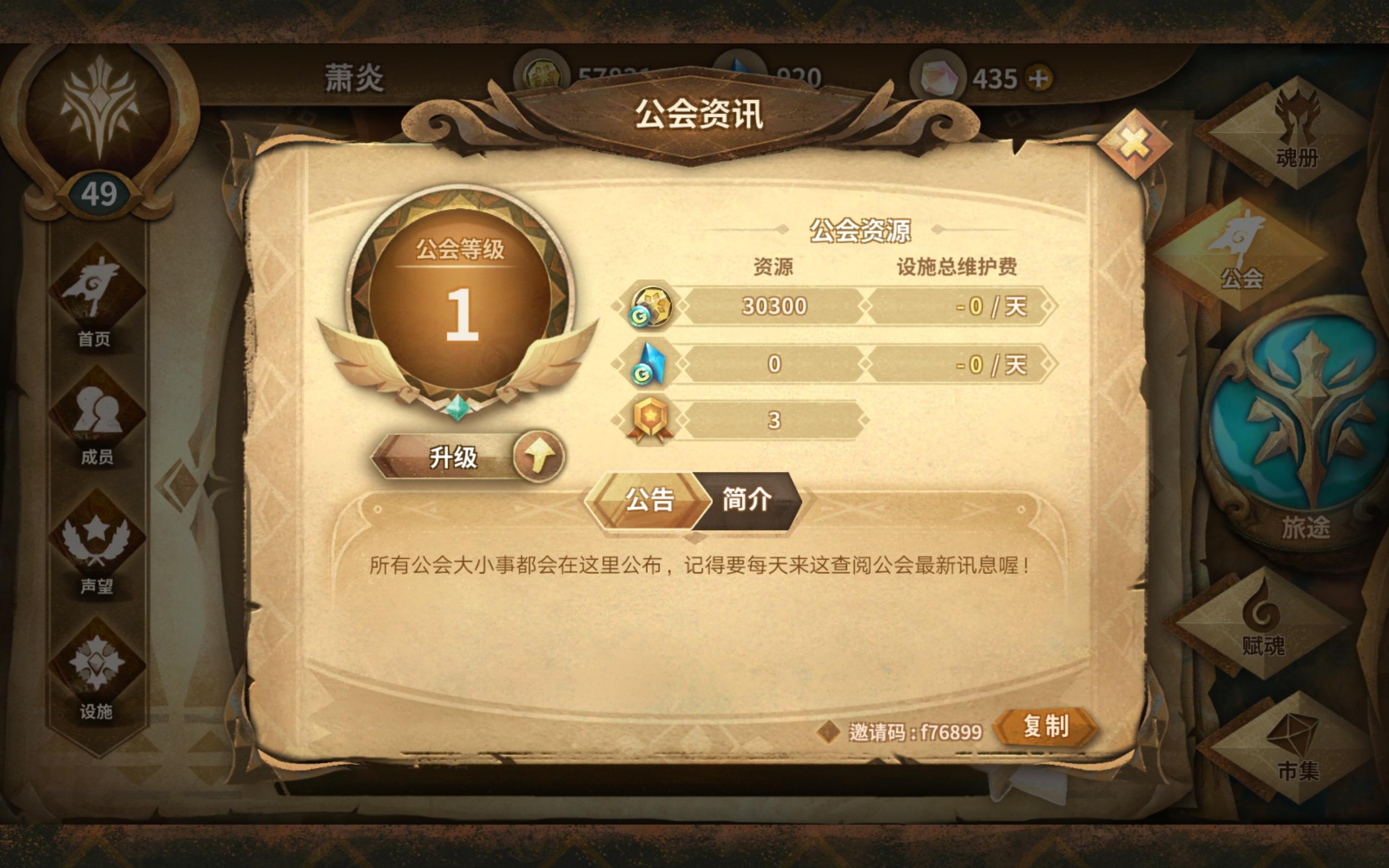 设施全开,周贡要求极低。日常清理死人和蛀虫,要求声望6级以上(可进公会在升)邀请码:3ca632扣群:745053544(如公会满人,进群喊下给空位置