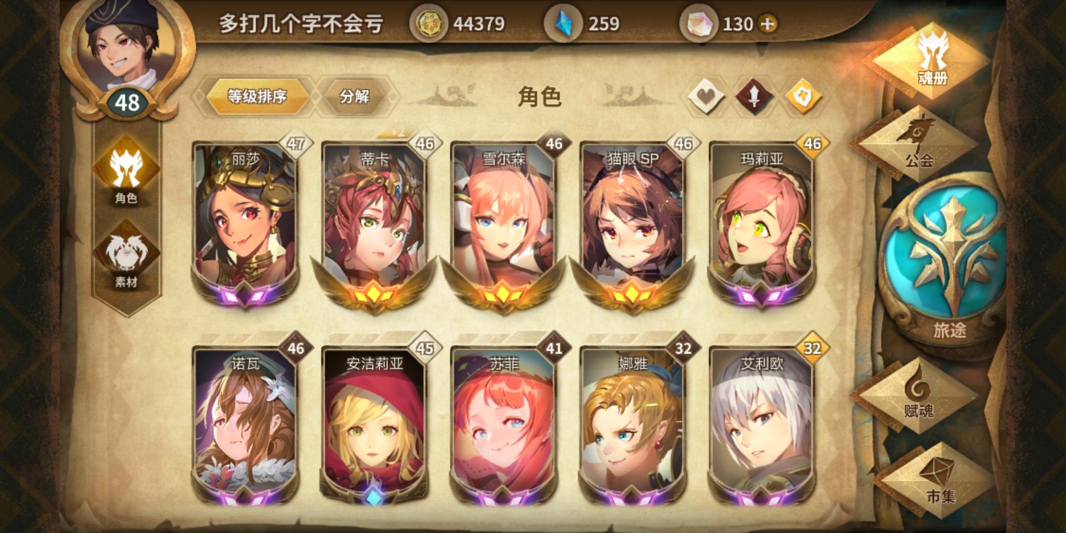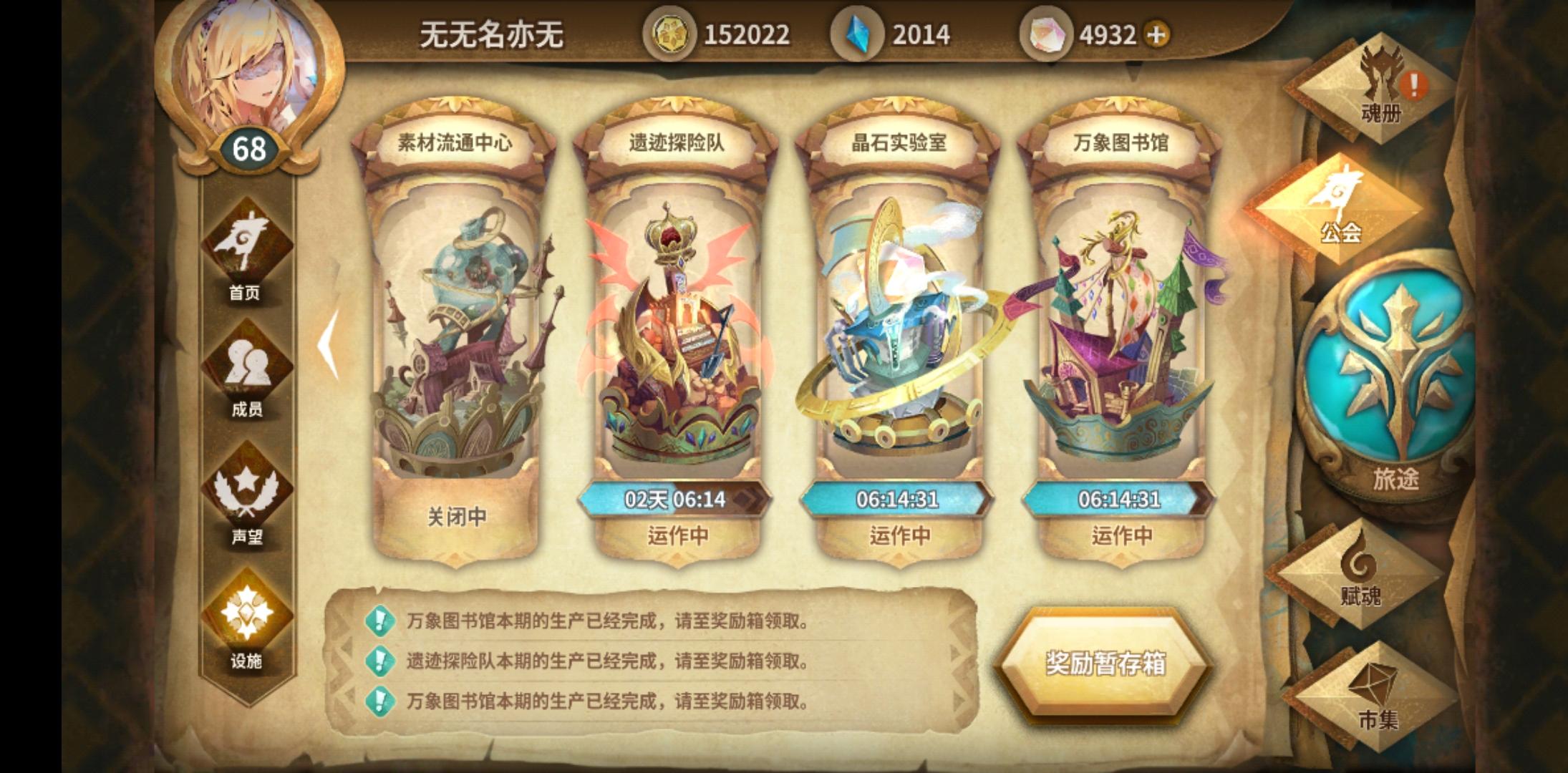 玩了11天,之前加入一只开魂能的公会两天捐到5级声望求个设施齐全的公会,每天在线,公会任务全清。