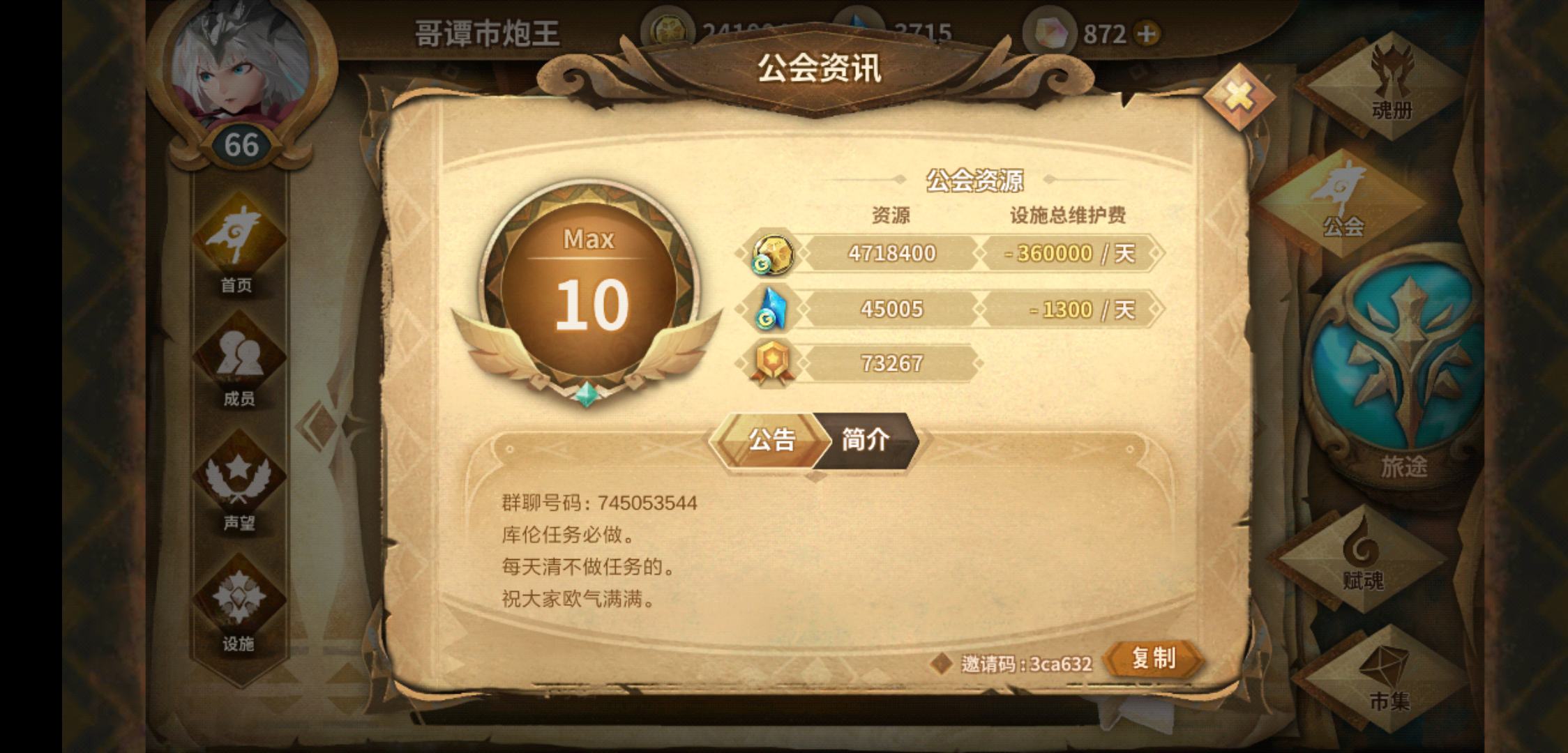 公会邀请码:3ca632
