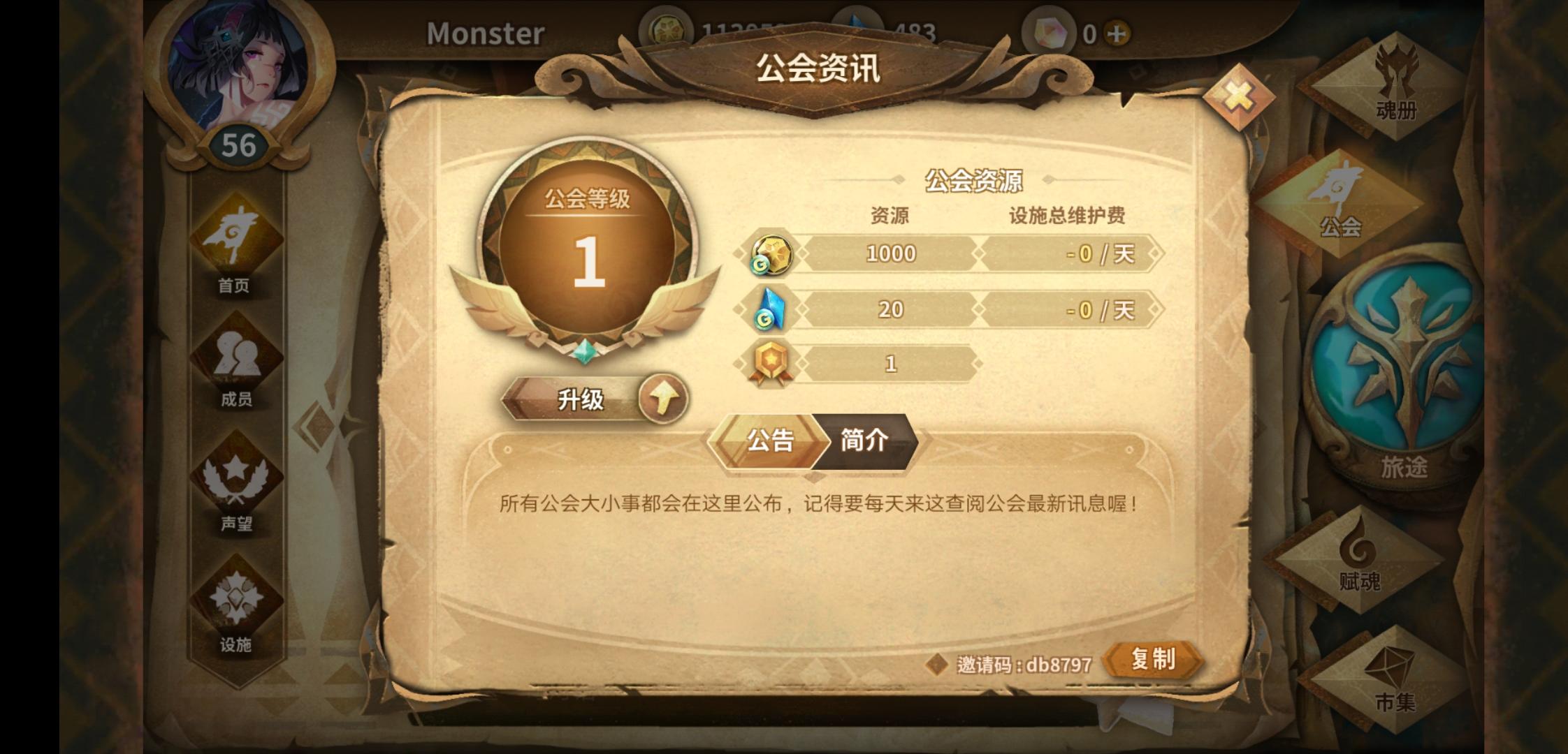 萌新求个公会,声望7级,每天清任务