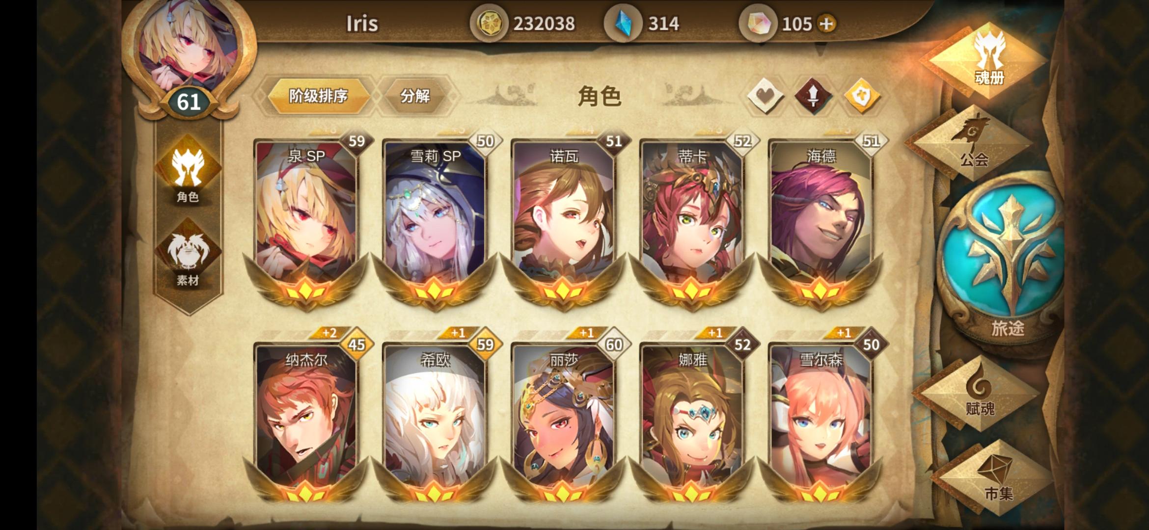 RT,玩了一个星期不到,角色目前有这些,但是不知道该多培养哪个角色。。。也想问问各位有没有什么比较好的搭配(刷本,本人很少打幻境),另外有没有公会愿意收我啊。。。提出申请基本石沉大海,还有一些公会都需要声望达到多少级。。。