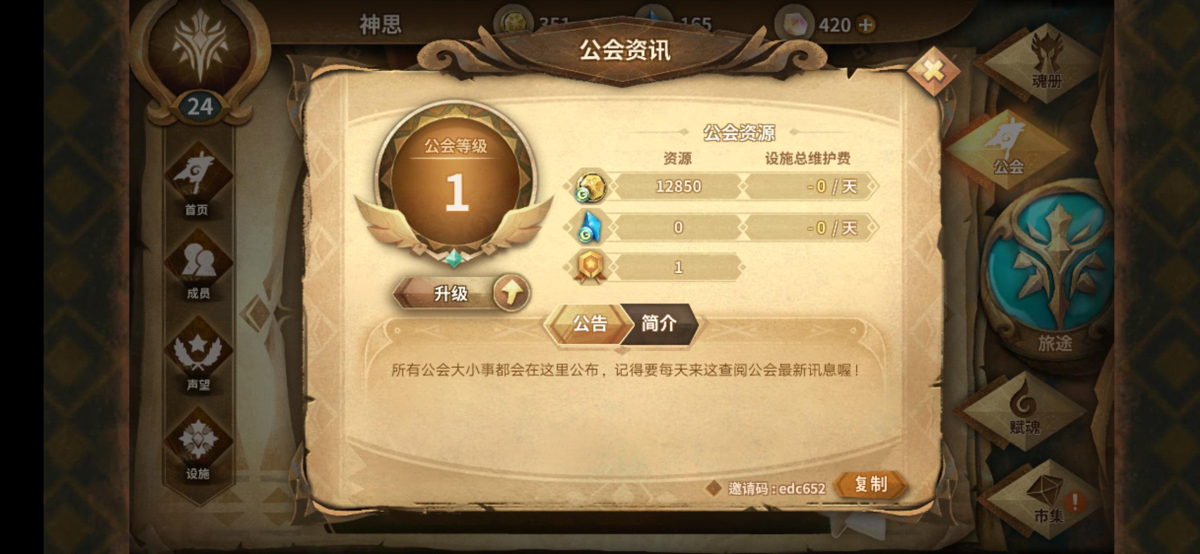 10级公会招募,设施全开,仅需完成任务(声望6+优先)欢迎大家的加入