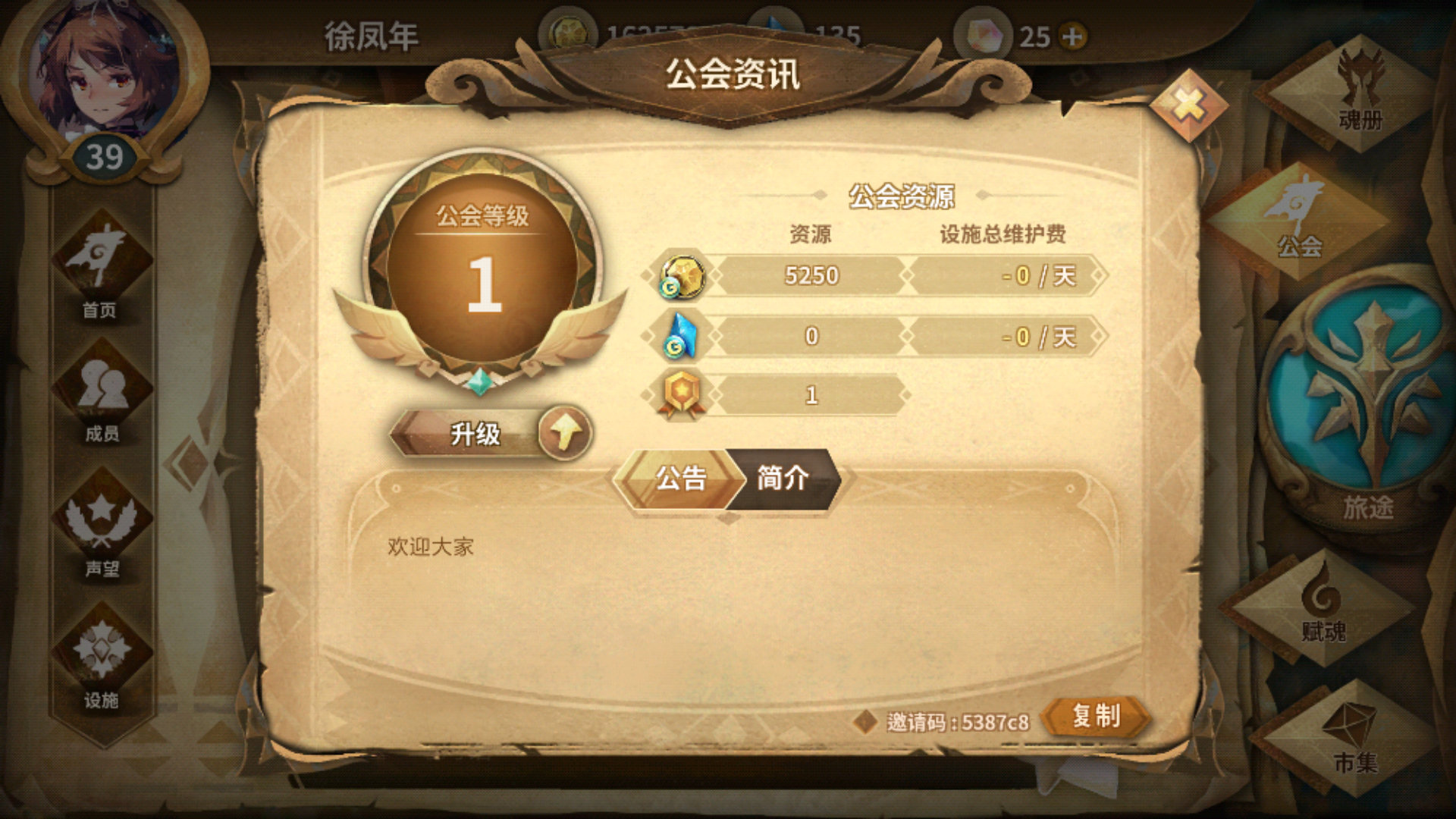 单人开了一个工会,但是要升级,一个人简直不可能,所以,求同班一起来玩。