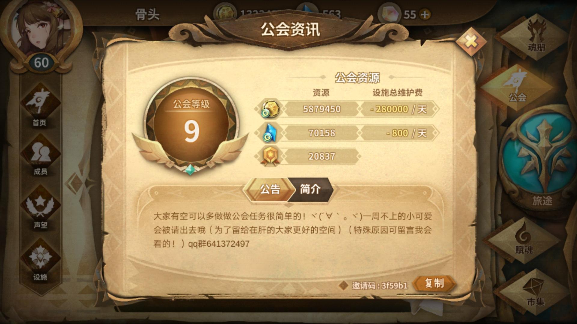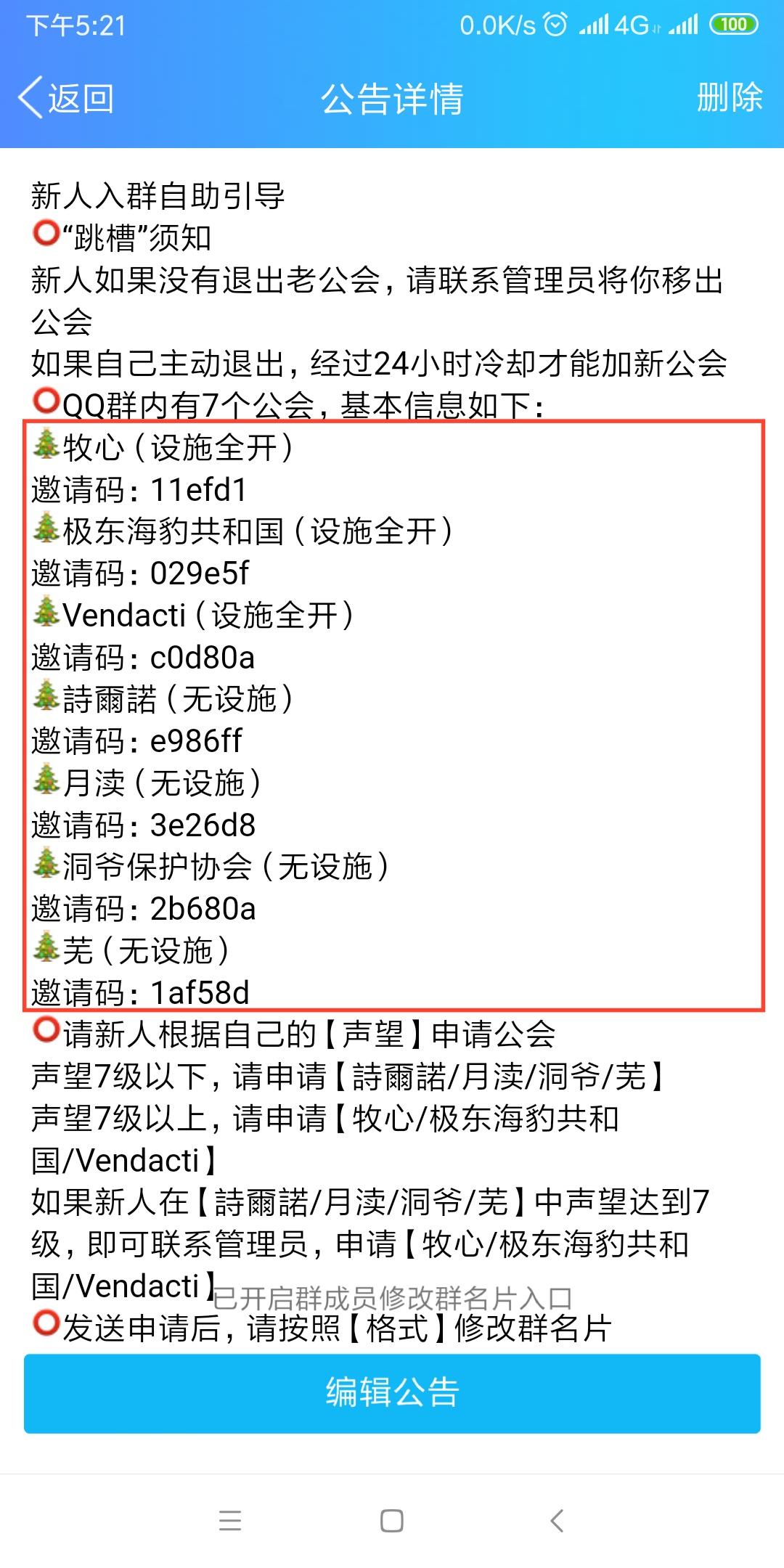 群内有7个公会,前3个设施全开,还有2个即将达到10级,最后2个是给入坑萌新准备的新公会。欢迎有兴趣的朋友加群咨询。