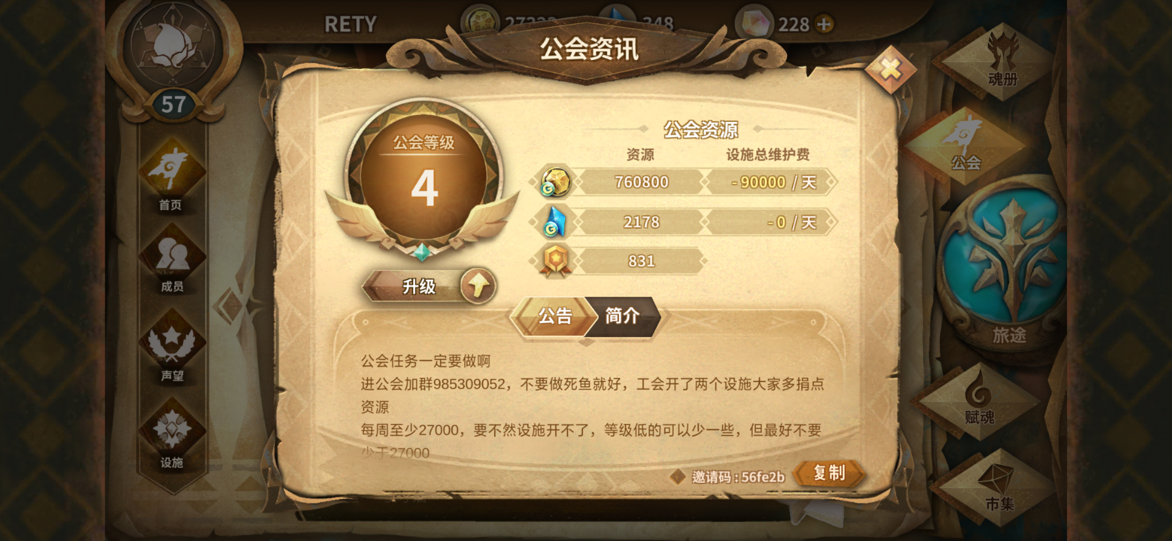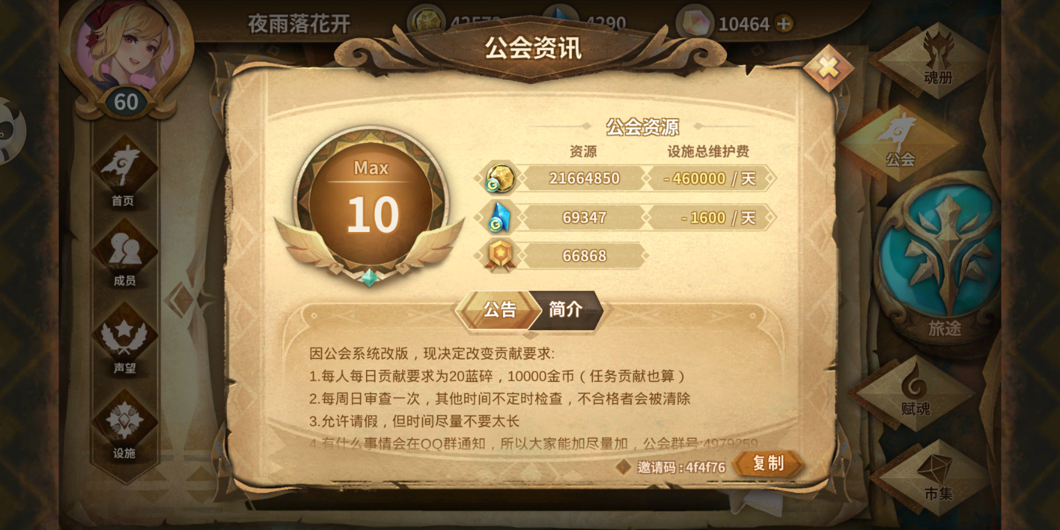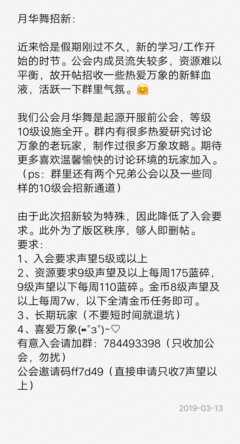 设施全开,要求声望最低五级,有日贡要求,想要加入的小伙伴请加公会群497925929确认~