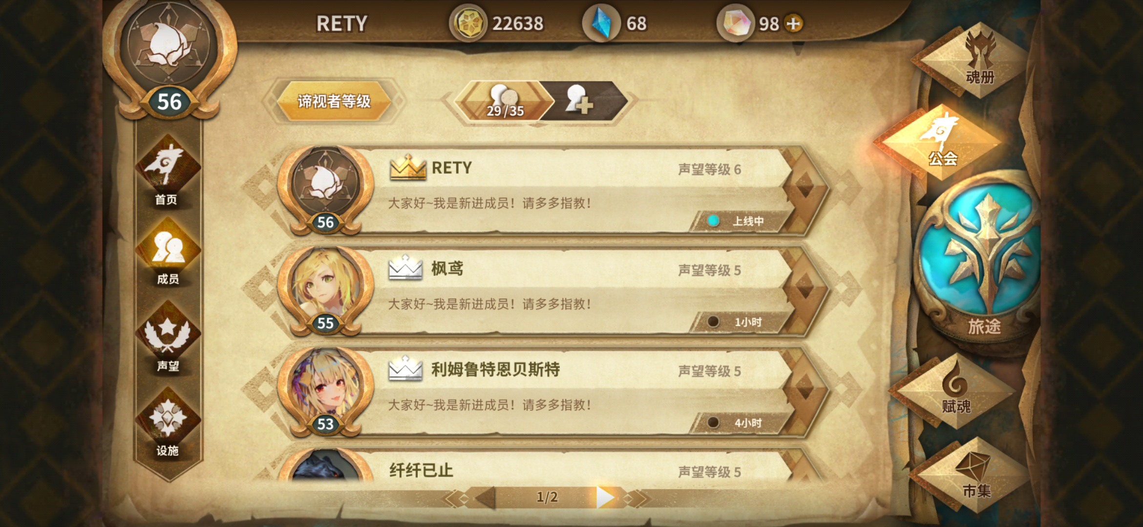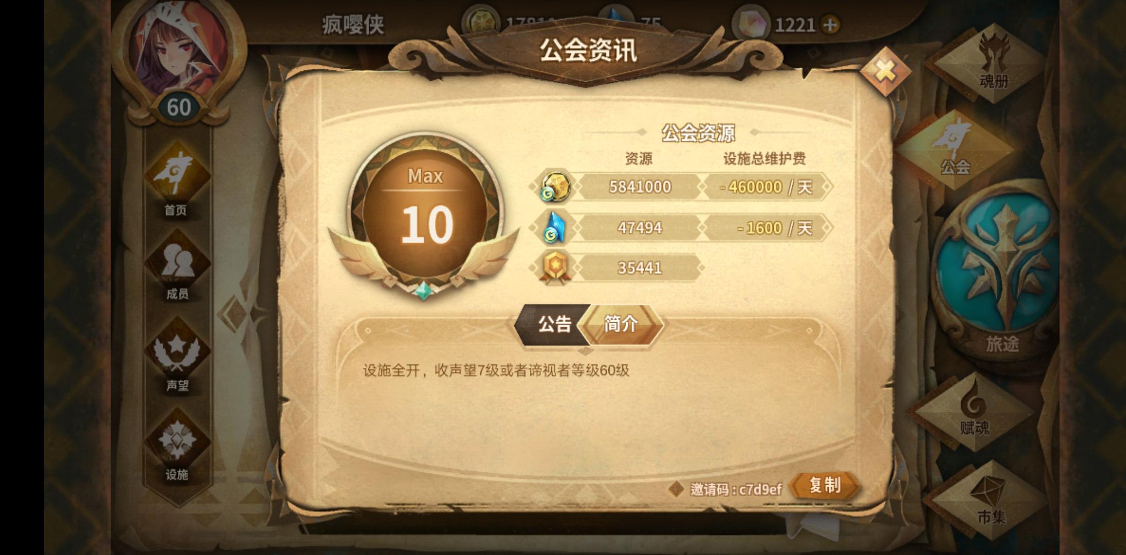 新公会夜夜笙歌欢迎大家加入,不强制要求捐献、做公会任务。敲门砖:9d29b2快来一起玩呀!!!