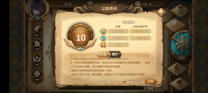 兰个哩个兰,邀请码: 27170e,先加q群:1135056446官服,公会设施全开。群里有大佬,萌新有不懂的可以问公会里的成员,会耐心回答,需要的公会参谋也会及时挂。加入公会后,留意公告,每天做完5个公会任务即可。公会活跃,无论是新玩家、回坑大佬,只要你够活跃,就欢迎你加入。